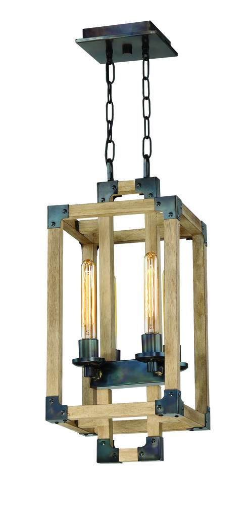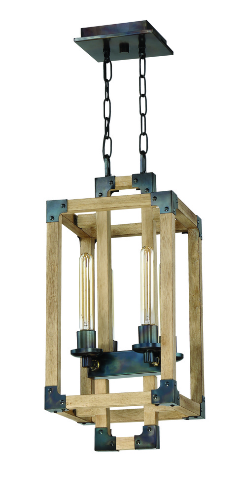 Cubic 4 Light Foyer in Fired Steel/Natural Wood