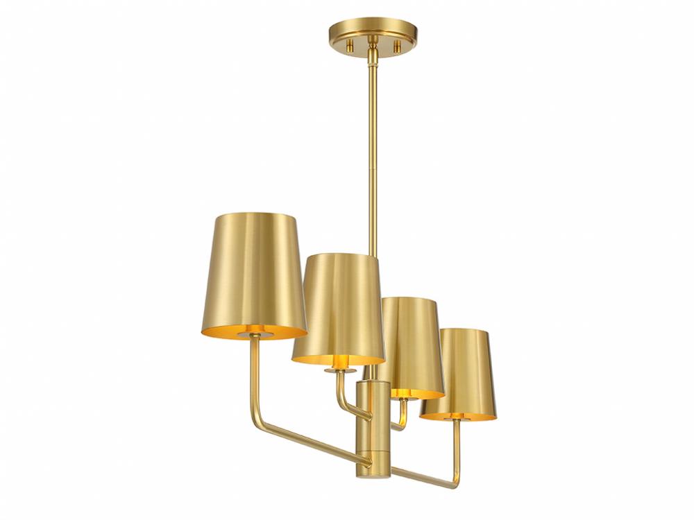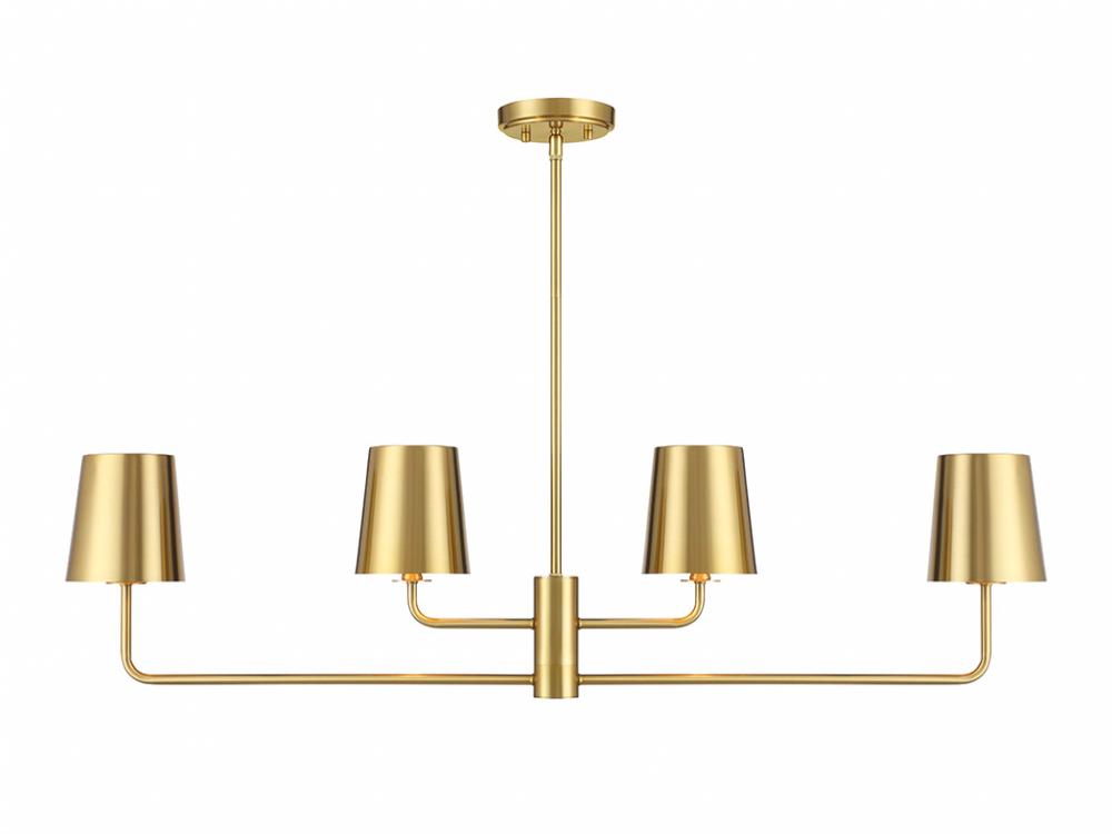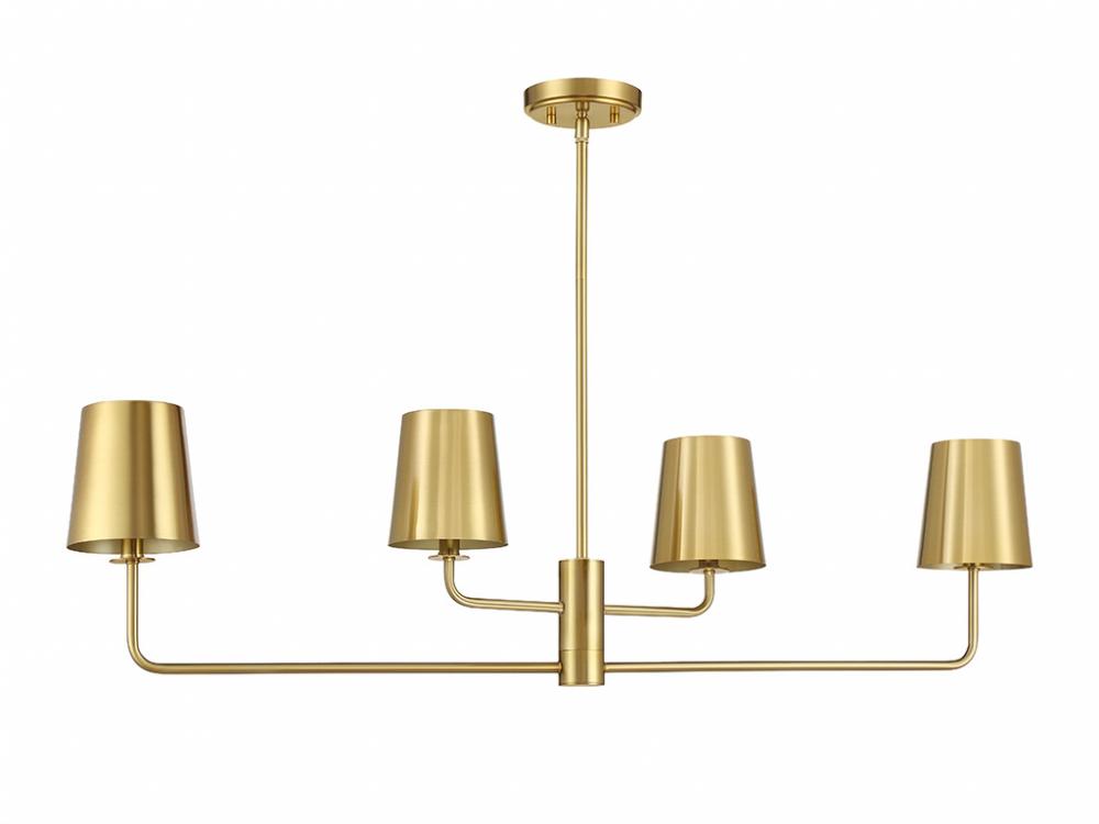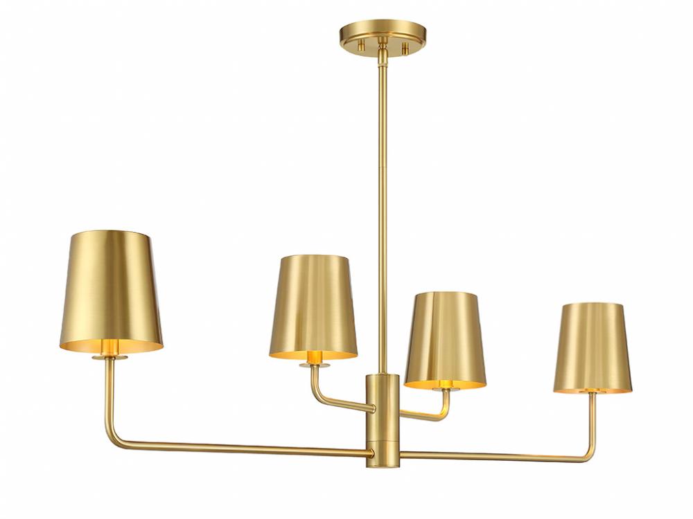 4-Light Linear Chandelier in Natural Brass