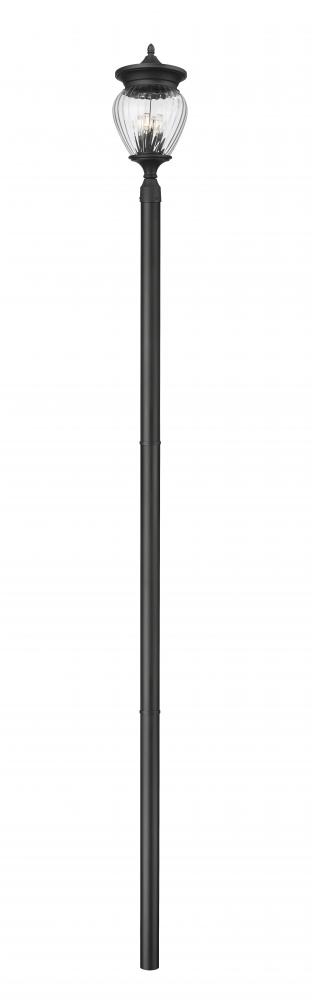 Exceptional artisan flavor turns an exterior fixture into a primary d?cor piece suited for a sophisticated yard setting. This four-light outdoor post-mounted fixture is a complete unit features a clear ribbed glass shade that filters light and creates rich dimensionality. With a smooth Coastal black paint finish, its dramatic impact is softened with a romantic gallery style.
