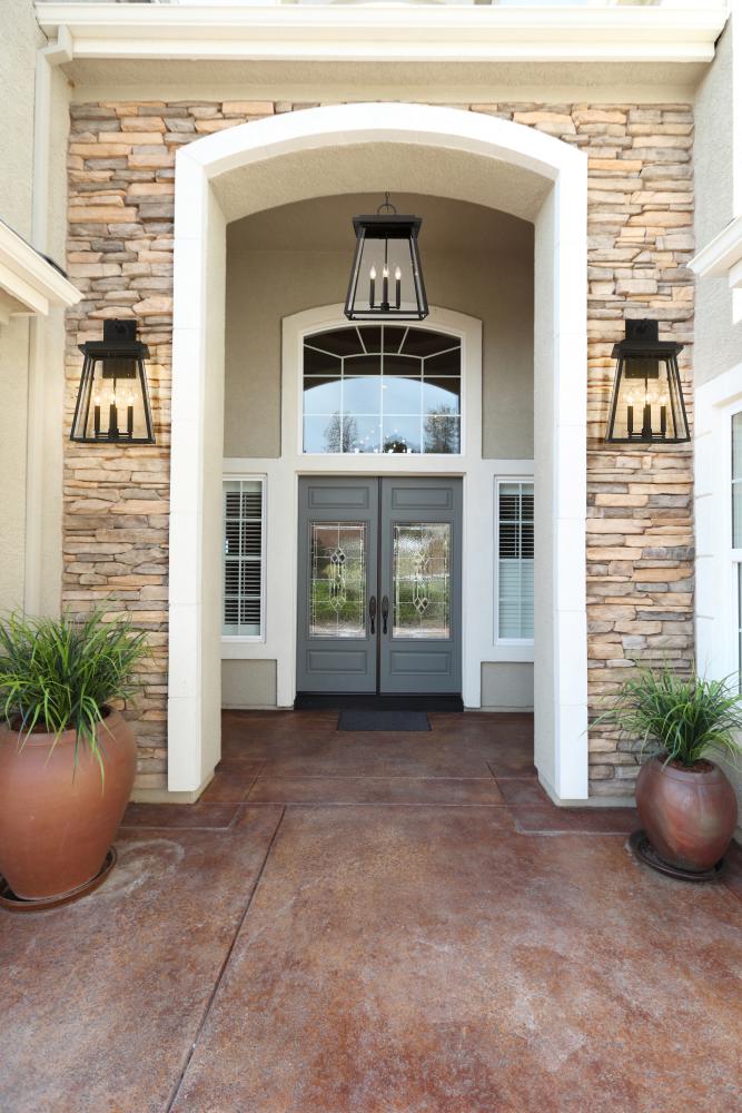 Defying convention, the Broughton series of outdoor lanterns is a well orchestrated craftsmen design with transitional elements. Beveled glass and a decorative loop on the lantern tops are crowning touches, along with stepped design on the top for added di