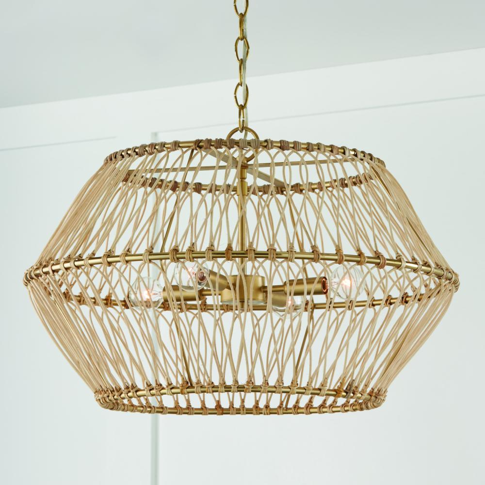 24.25"W x 15.25"H 4-Light Pendant in Matte Brass with Natural Rattan