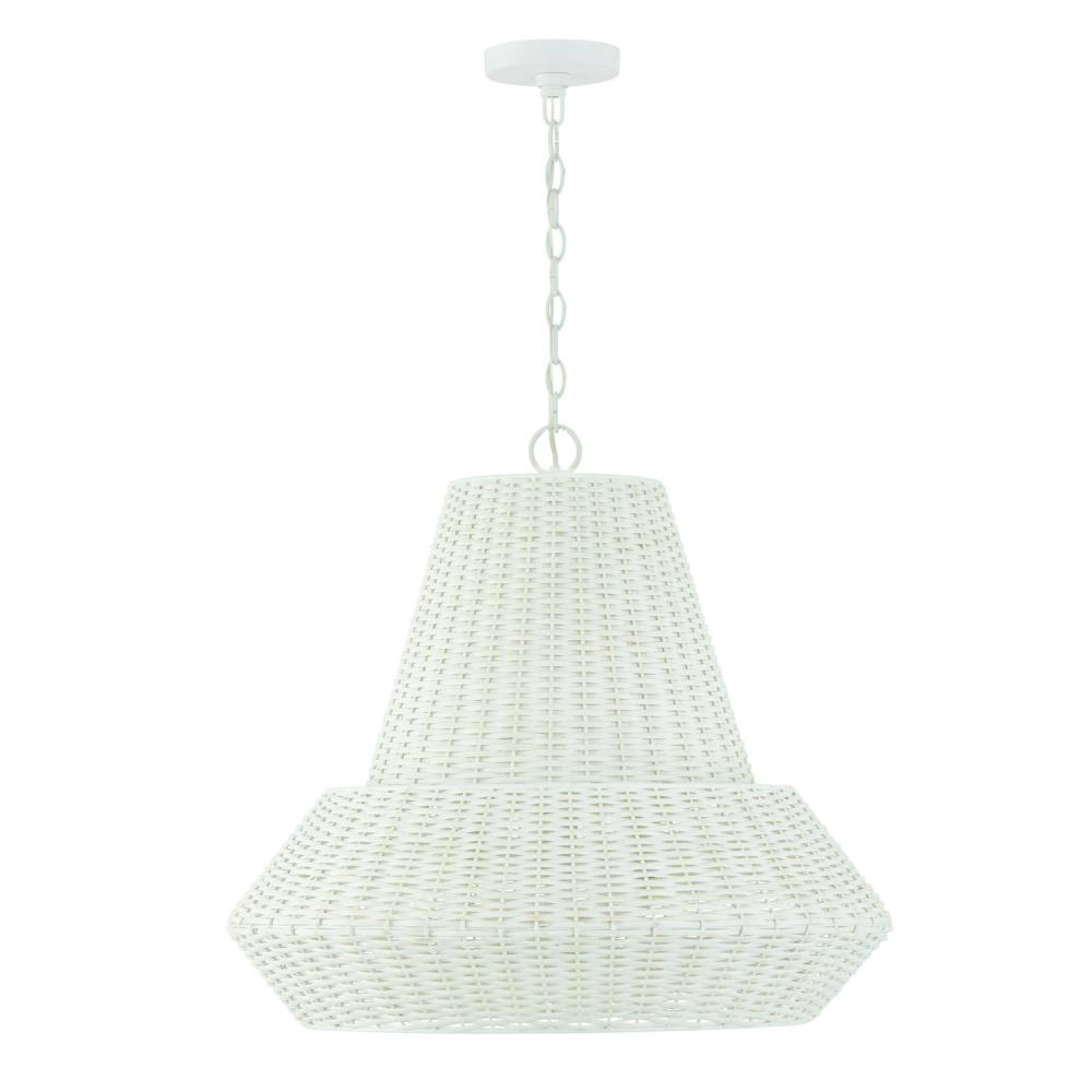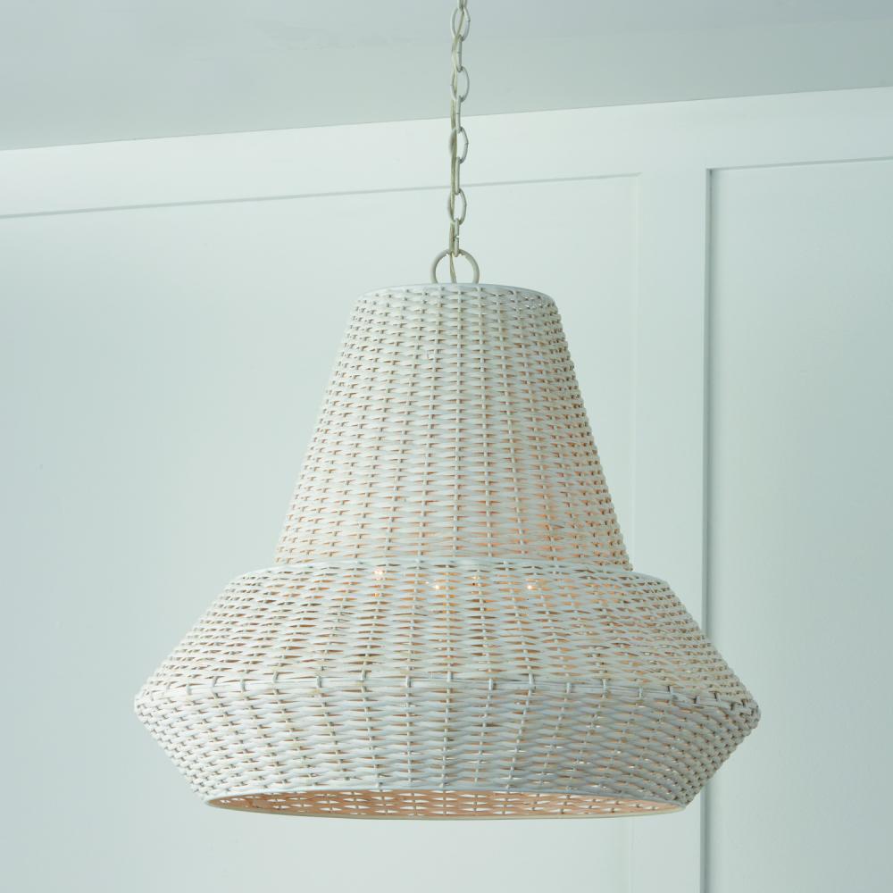 24"W x 22.75"H 4-Light Pendant in Chalk White with Hand-Woven Painted Rattan