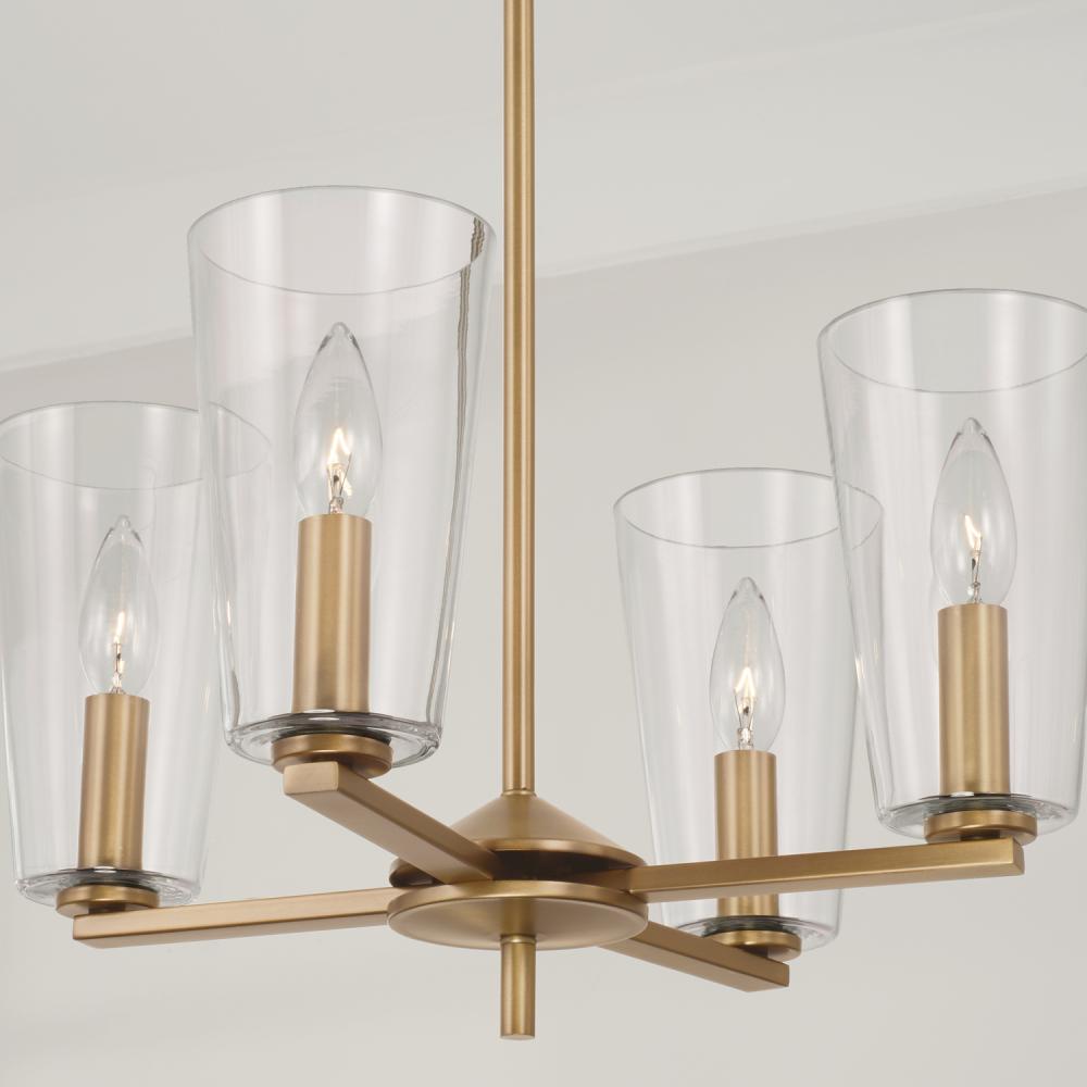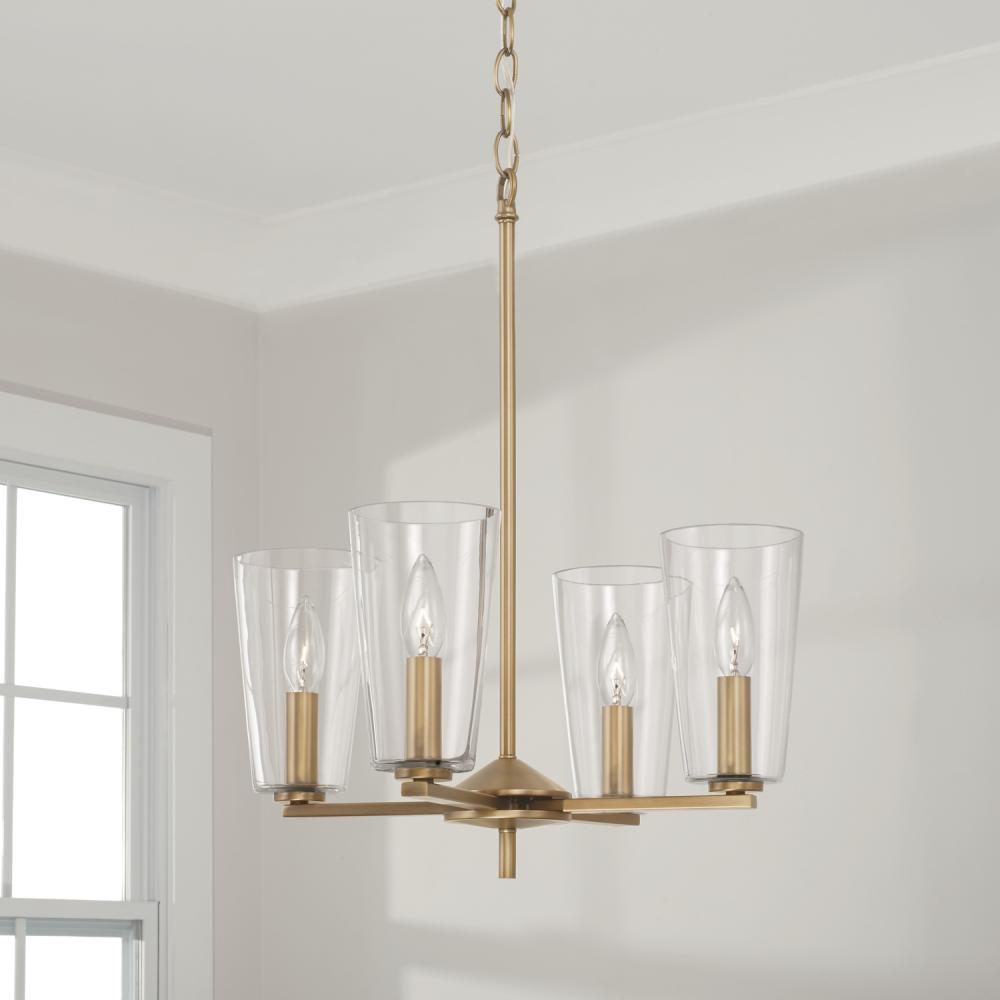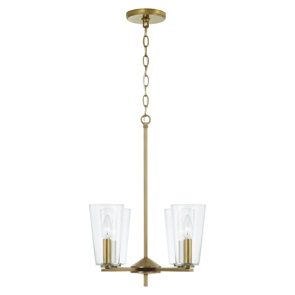 17.5"W x 21"H 4-Light Pendant Chandelier in Aged Brass with Clear Glass