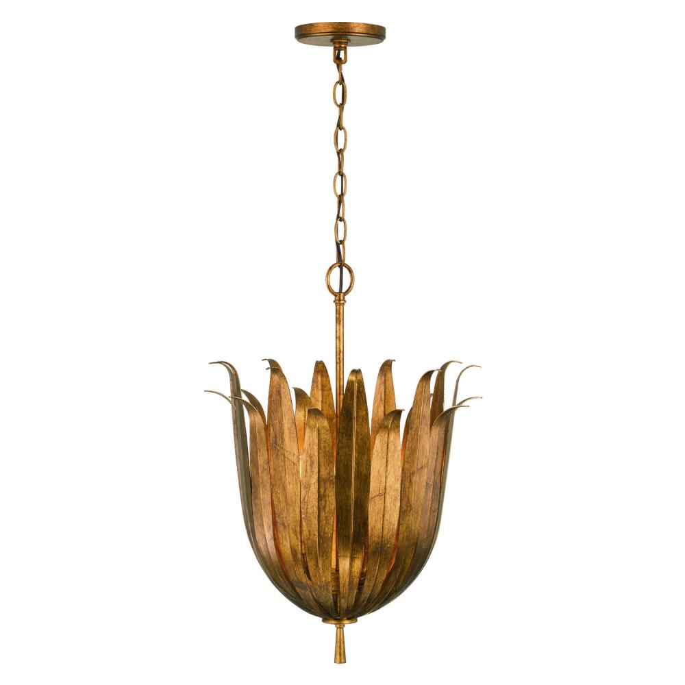 16"W x 22"H 4-Light Botanical Tall Foyer Pendant in Antique Gold