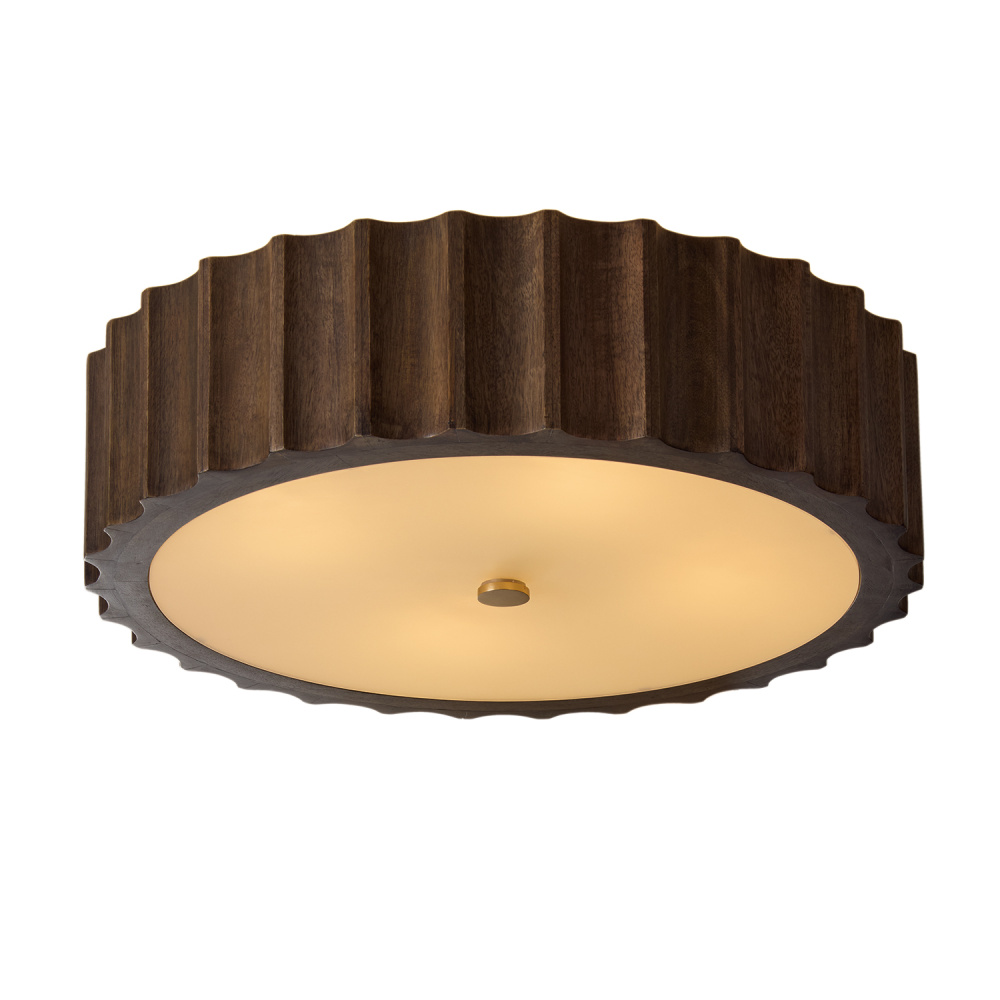 DETAILS: The handcrafted, fluted mango wood brings dramatic texture to the classic drum silhouette, complete with a White acrylic diffuser and Matte Brass finish.
