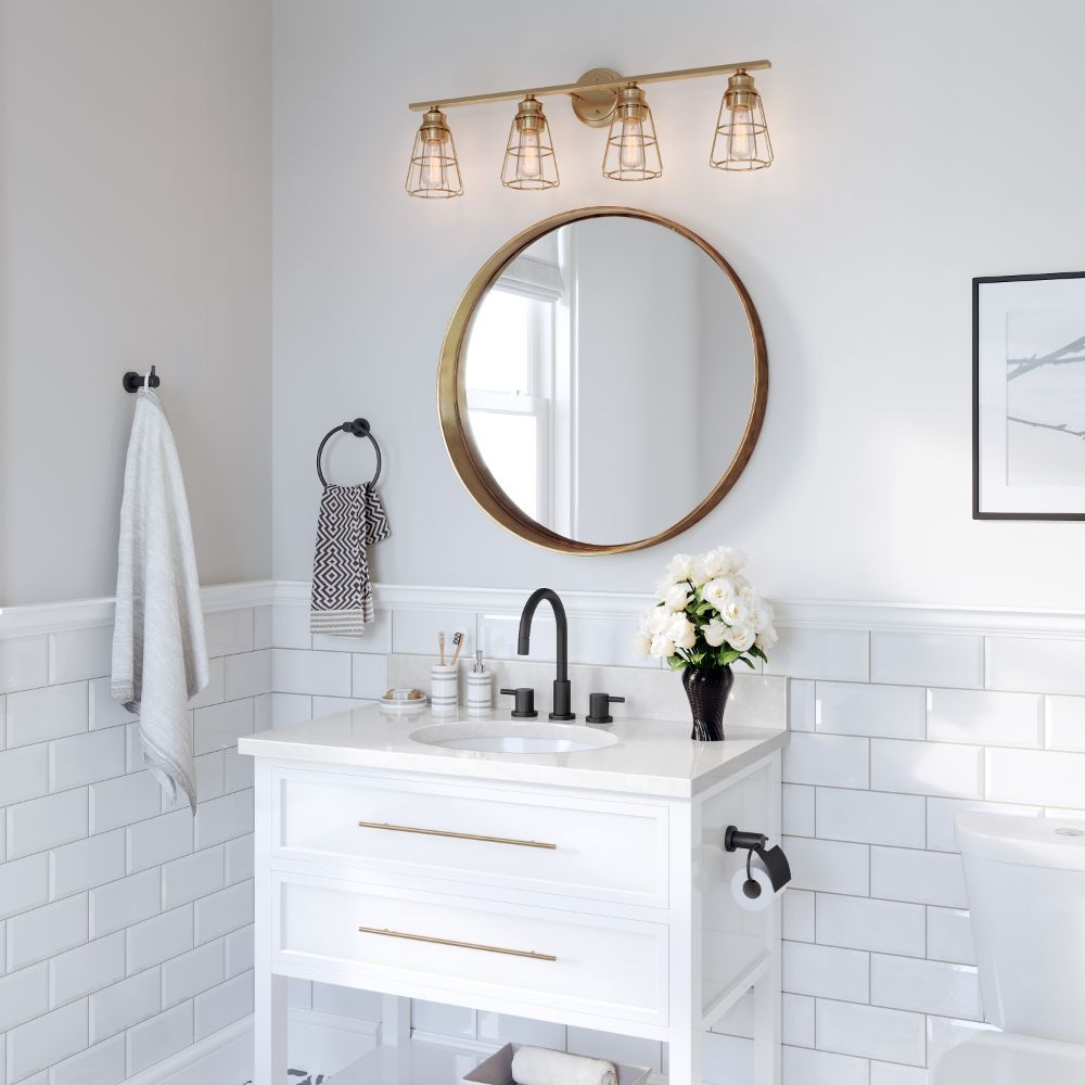 Place this fixture directly above the mirror and sink to add the perfect lighting to your bathroom.