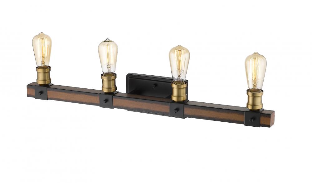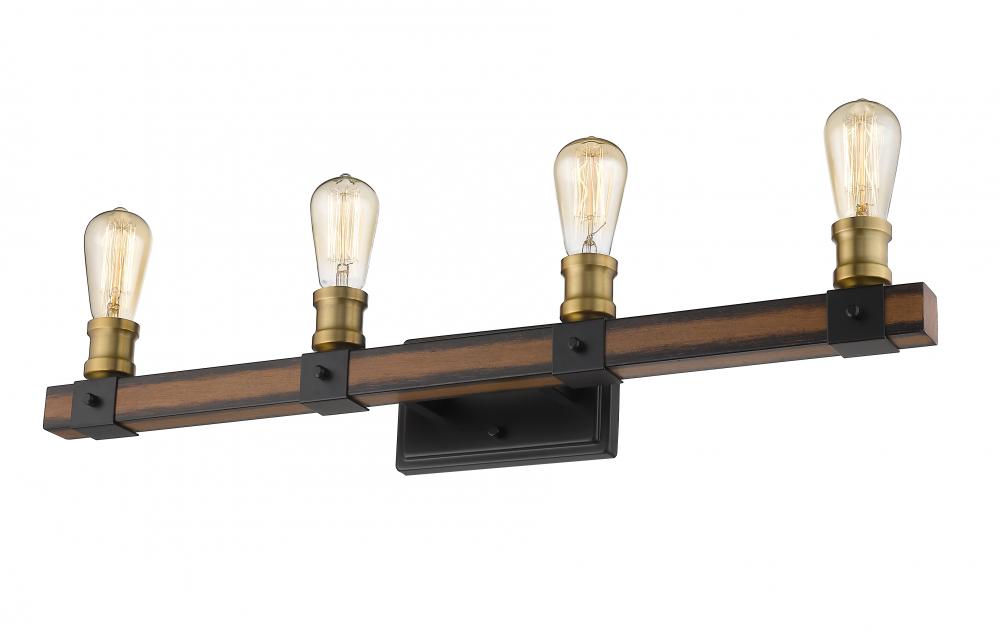 Rustic mahogany over the clean lines from this four-light wall sconce transforms modern spaces with warmth. Welcome an inviting feel into any bathroom with this faux barnwood-constructed fixture.