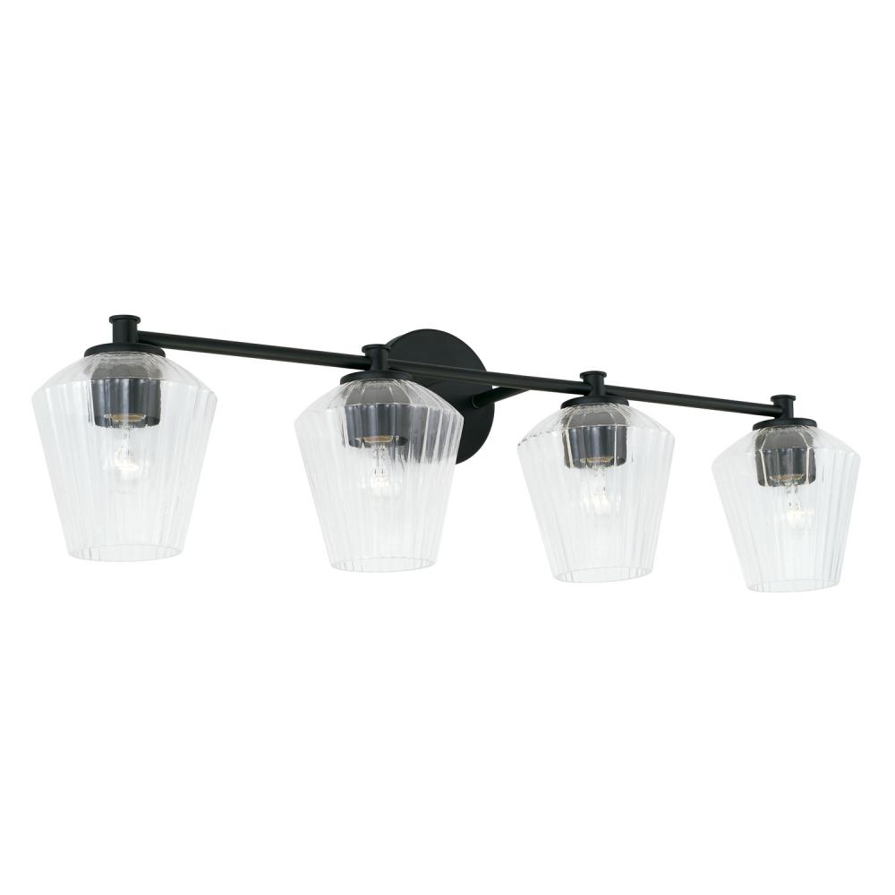 The architectural detailing of the fluted glass shades in the 4-Light Vanity in Matte Black creates luxe looking style that is effortlessly elegant.