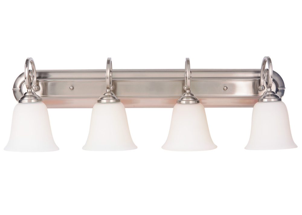 Cecilia 4 Light Vanity in Brushed Polished Nickel with White Glass