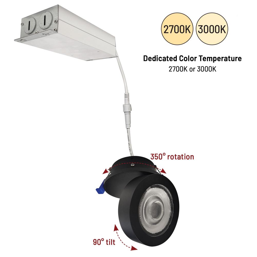 4" M-Wave Can-less Adjustable LED Downlight, 2700K, Black finish