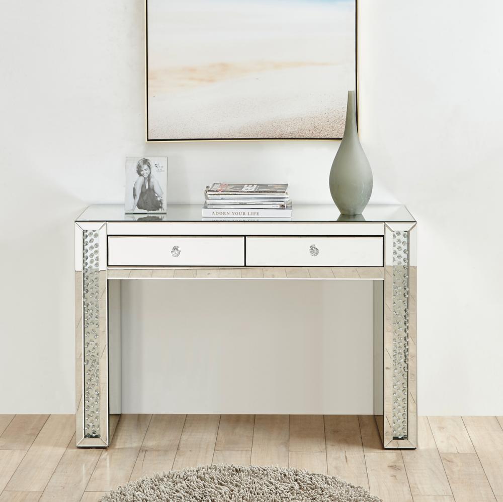 47 inch Rectangle Crystal Vanity Table in Clear Mirror Finish