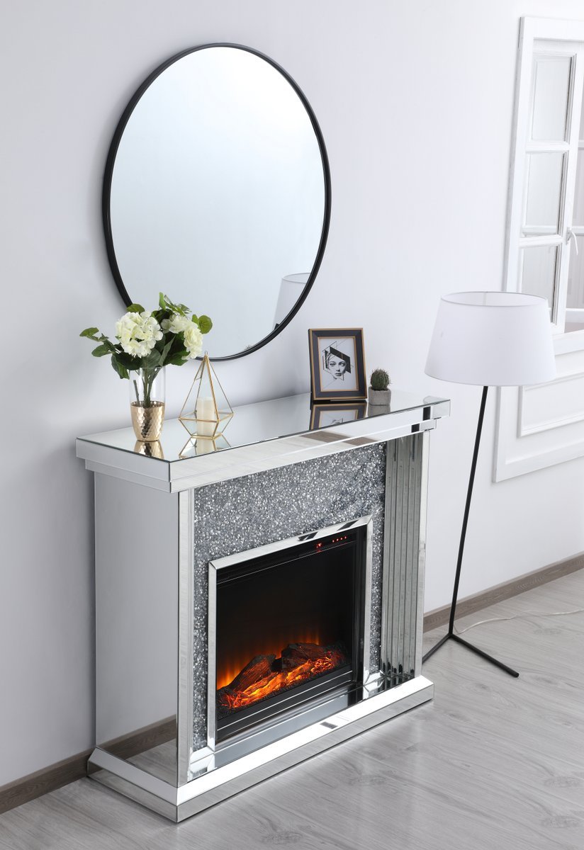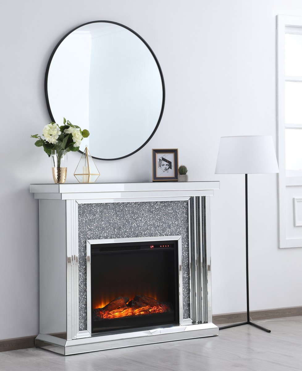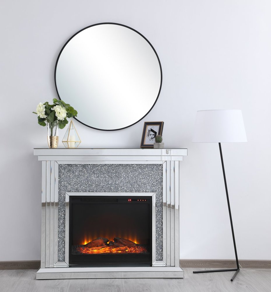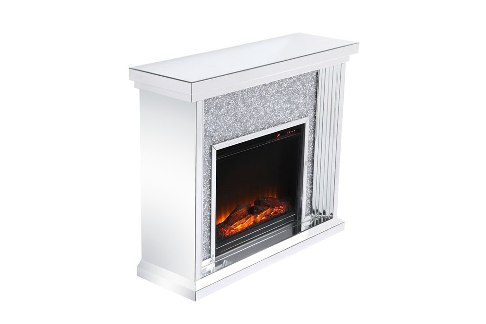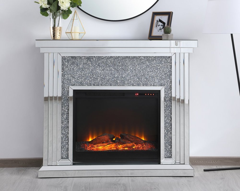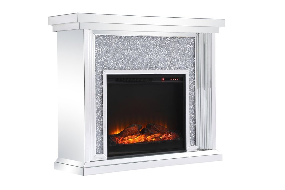 47.5 in. Crystal mirrored mantle with wood log insert fireplace