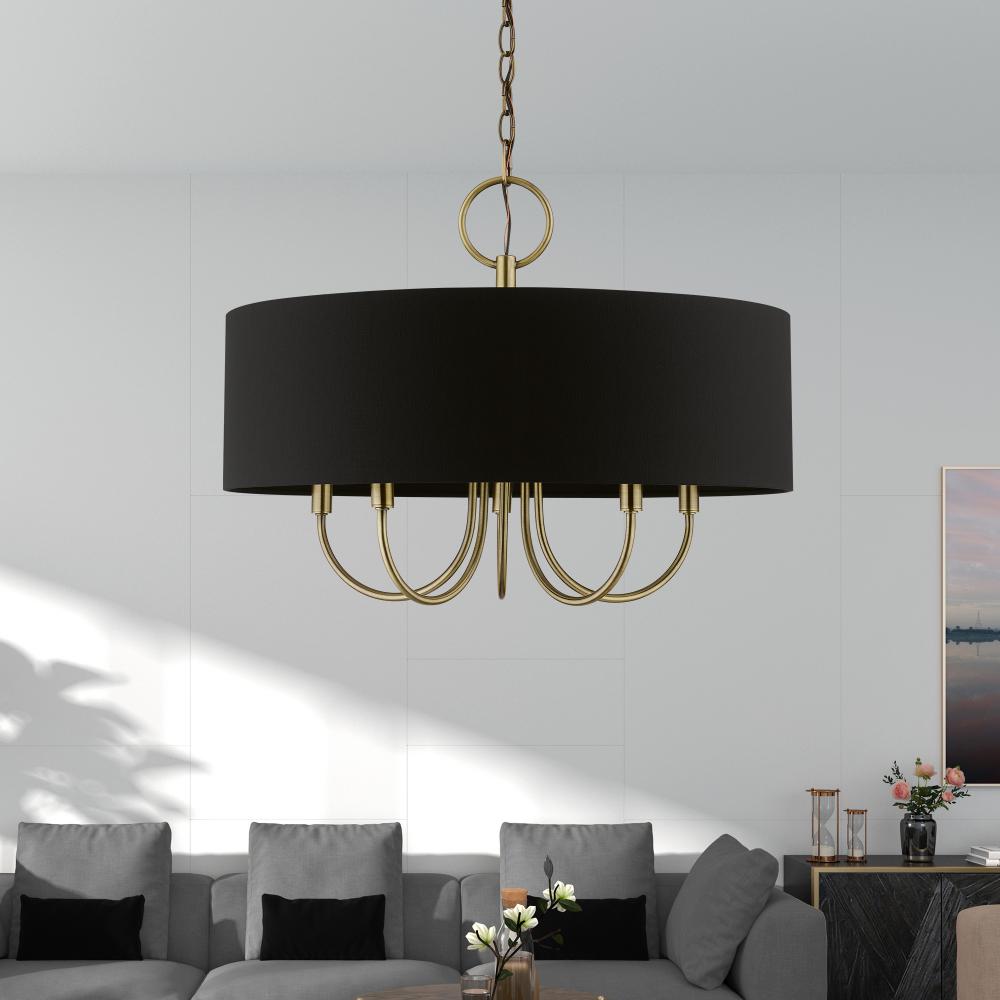 Livex Lighting 40115-01 - 5 Light Antique Brass Pendant Chandelier