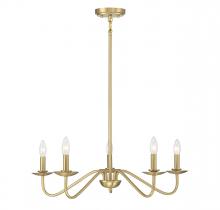 This 5-light chandelier has a streamlined design that works perfectly in a variety of spaces and decor styles, from traditional to rustic and more! It is finished in Matte Black for a look that is delightfully on-trend. 7" height and 28" width. Adjustable height ranges from 13" to 61". Uses five candelabra size bulbs with a max of 60 watts per bulb (not included). Supplied with four 12" downrods and one 6" downrod. Uses a dual mount hanging system for flat or sloped ceilings.