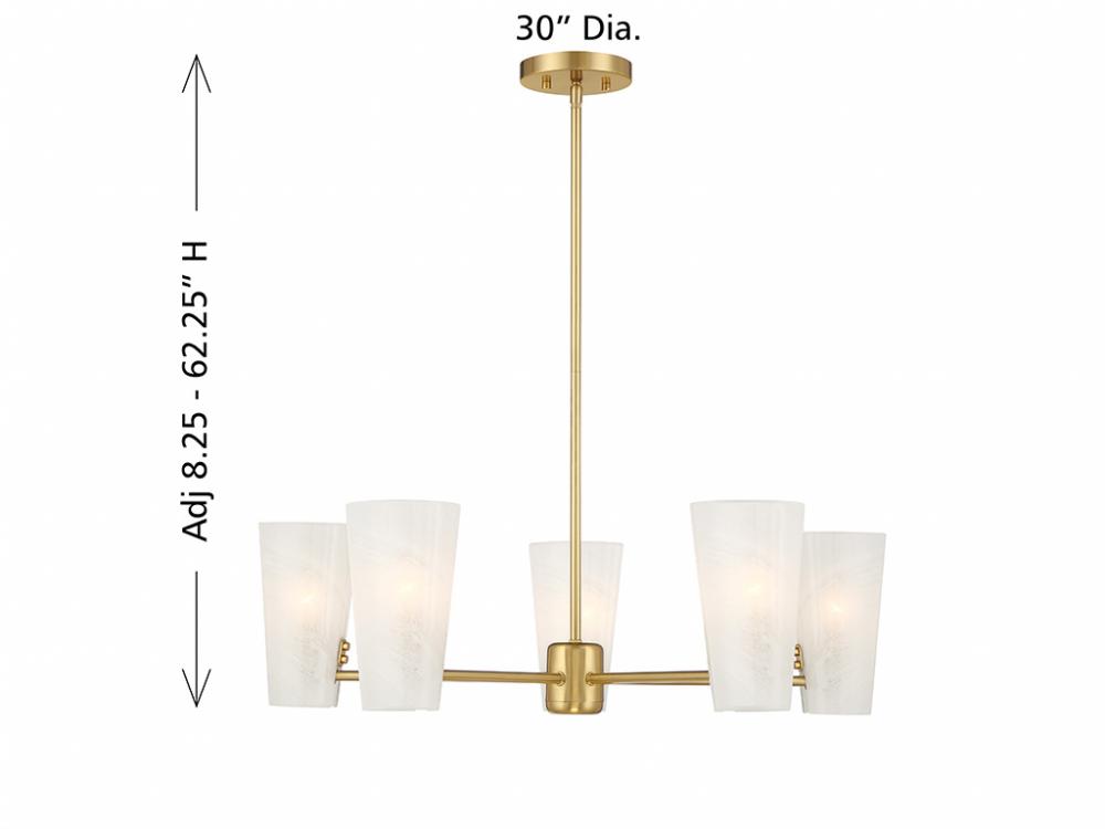 5-Light Chandelier in Natural Brass