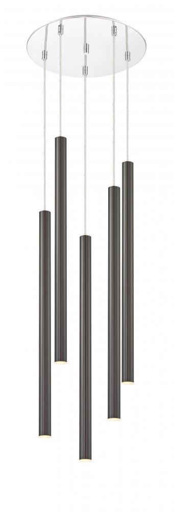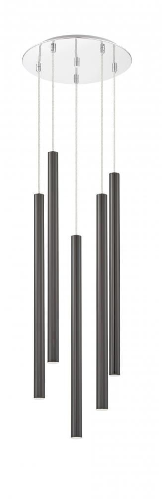 Windchime-inspired, this five-light pendant light is full of playful, radiant charm. The pearl black finish casts a soft glow over the delicate silhouette.