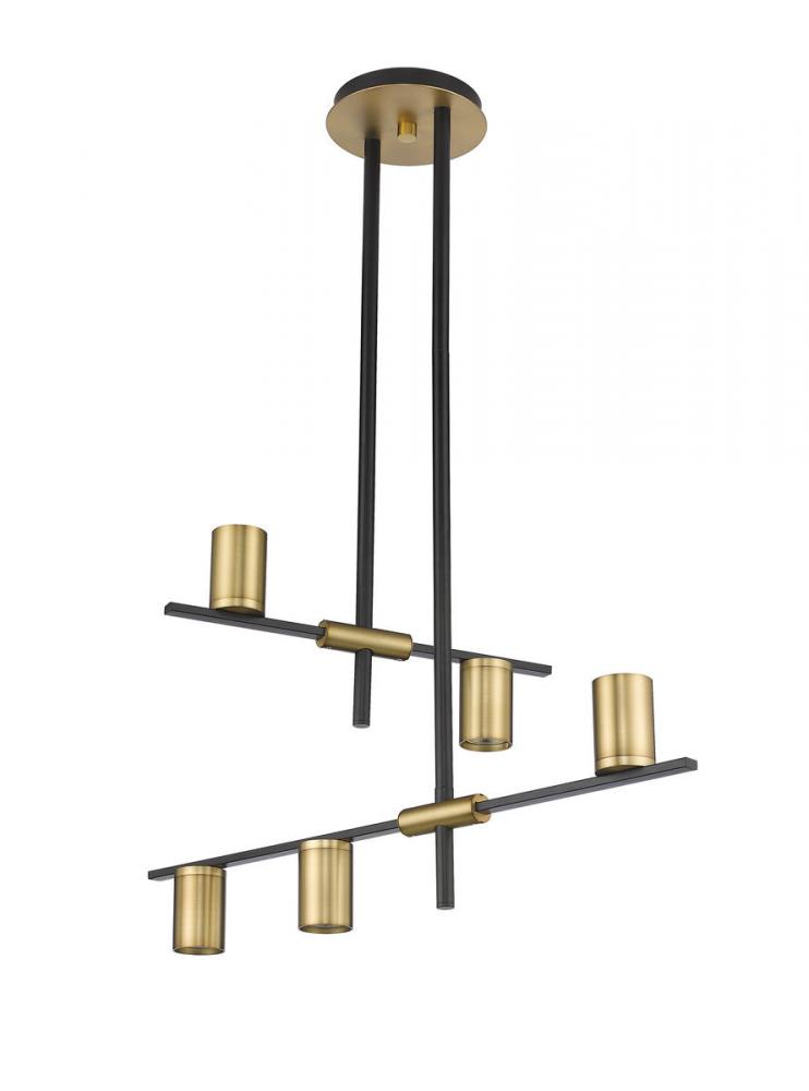 This five-light chandelier from the Calumet collection becomes a favorite in transitional or modern d?cor, offering up a storied motif borne of Native American tribal lore. A geometric silhouette infuses contemporary energy to this fixture made of matte black finish steel and accented with sleek olde brass finish shades that deliver lighting upward and downward. Choose this exceptional light to complete a fresh motif in a kitchen or entertaining space.