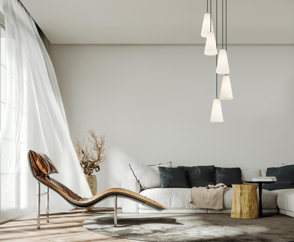 The elongated fluted shape of the Farrell series provides plenty of light in a slim silhouette. Available as a pendant as well as a wall sconce, Farrell can be ordered in a choice of Brushed Nickel, Matte Black, and Modern Gold finishes.