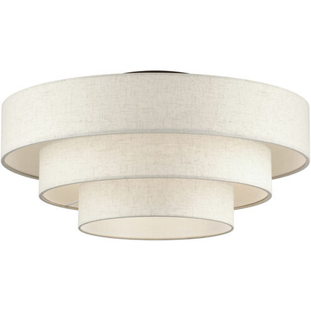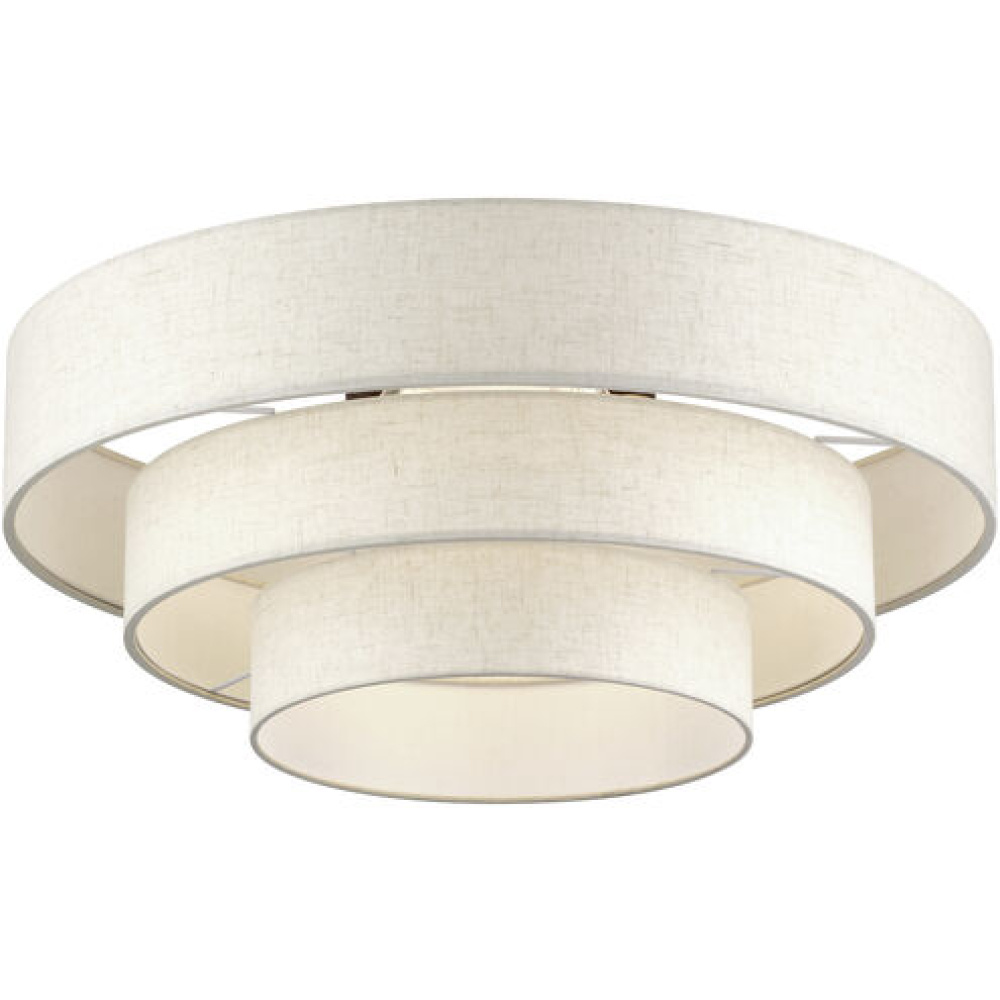 5 LT Brushed Nickel Extra Large Semi-Flush with Hand Crafted Off-White Color Fabric Hardback Shades