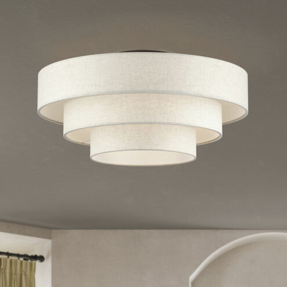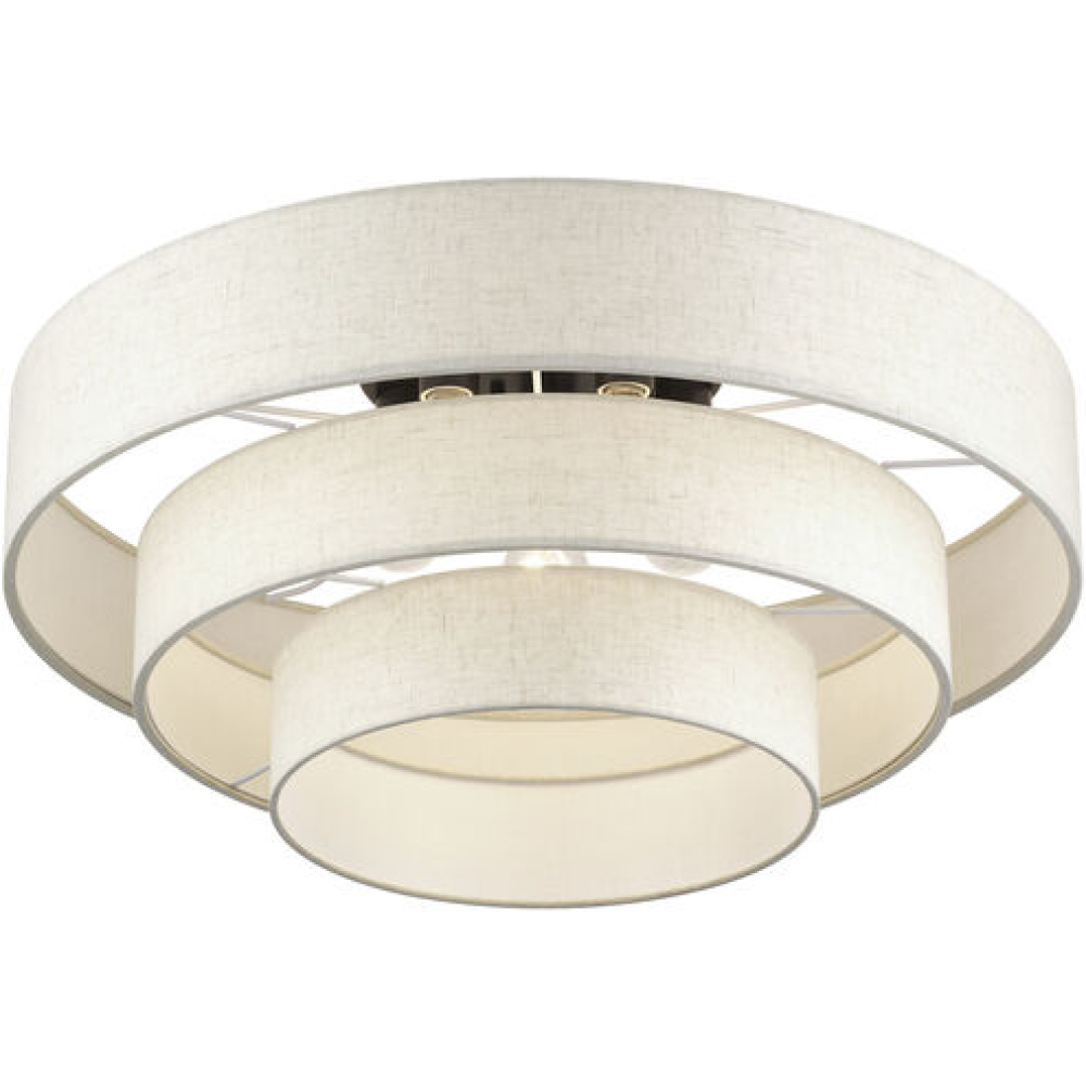 Livex Lighting 50309-91 - 5 LT Brushed Nickel Extra Large Semi-Flush with Hand Crafted Off-White Color Fabric Hardback Shades