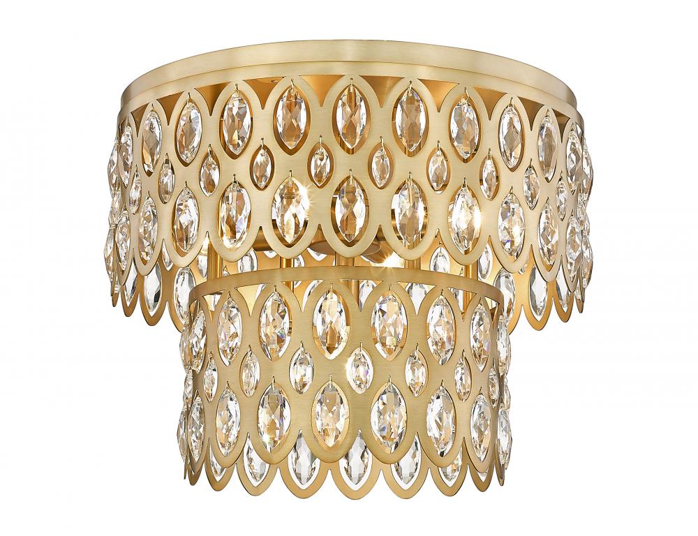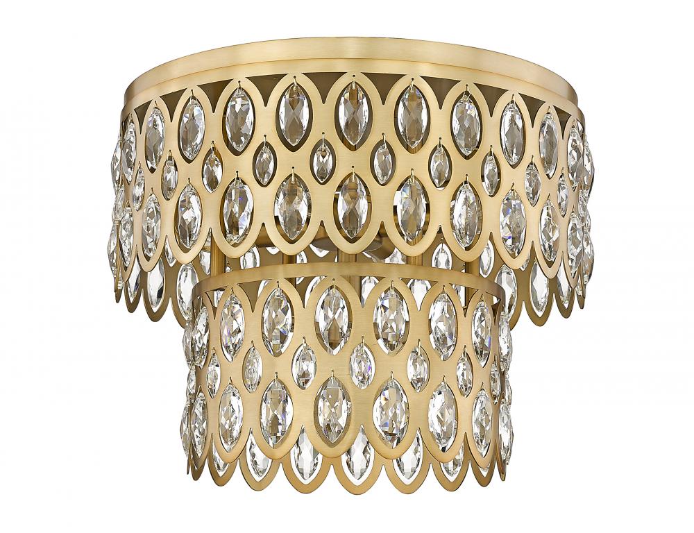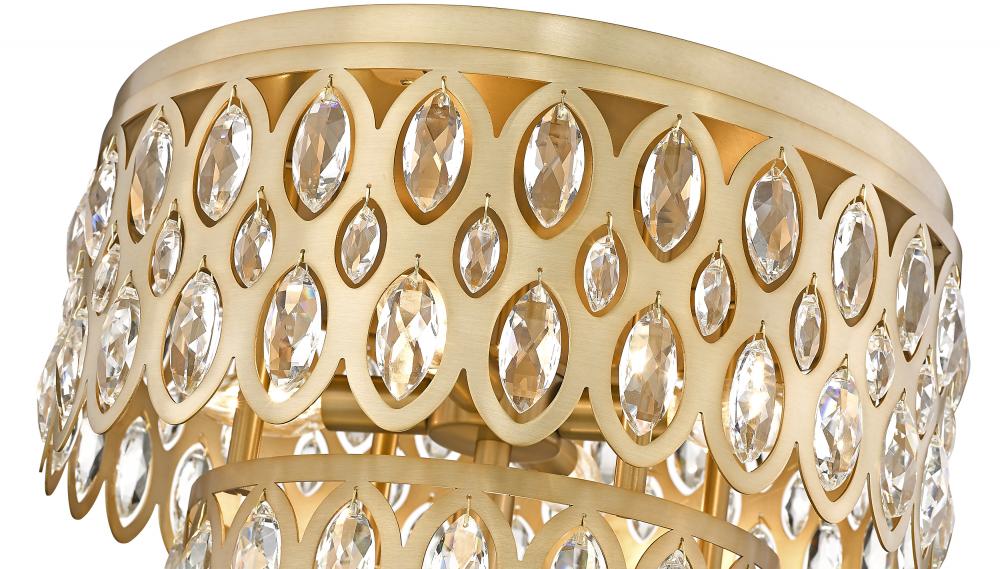 Double tiers showcase the sparkling crystal baubles that define this Dealey collection five-light flush mount ceiling light. An heirloom brass finish is both warm and welcoming, delivering richness and elegance over a master bedroom or in a sophisticated dining room. Glittering crystal ensures a look thats both glam and elegant, offering eye-catching ambiance in your elevated living space.