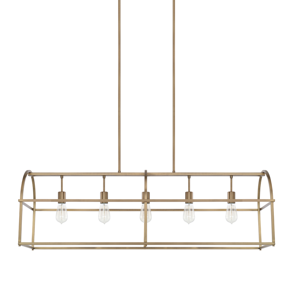 5 light island fixture with Aged Brass finish.