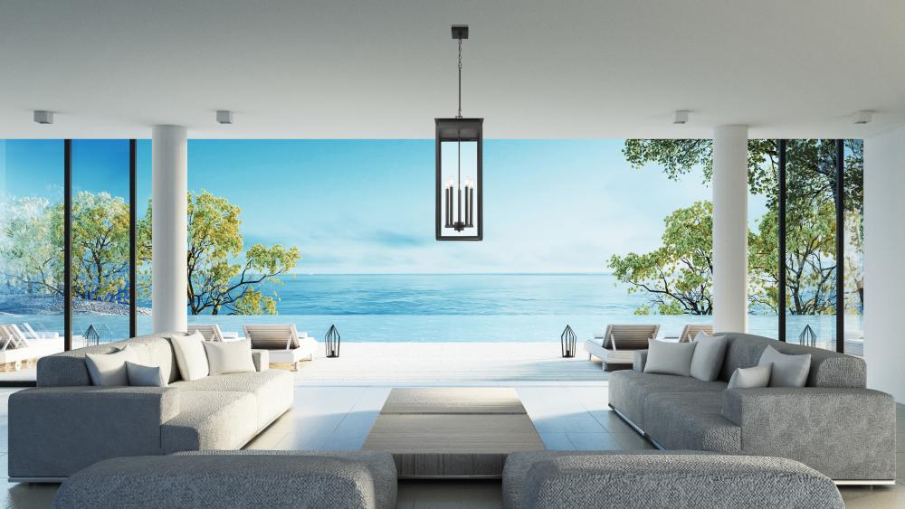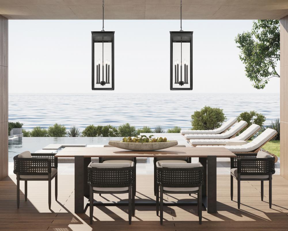 Bring grand luxury and elegance to your exterior entryway with this transitional five-light outdoor hanging pendant. Designed with a clean, precise silhouette inspired by a classic lantern, it features glass sides and a door that opens for easy lamping. The fixture is complete with a coastal black finish that stands up to weather all year long.