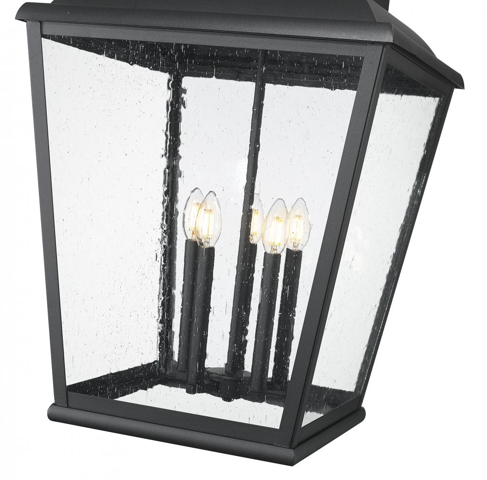 The Raphael collection, with its Black finish and clear seedy glass panels, is the perfect accompaniment to illuminate the exterior of traditional-style homes. Featuring rich details on the multi-tiered cap, scroll hook, and backplate, there is a variety o