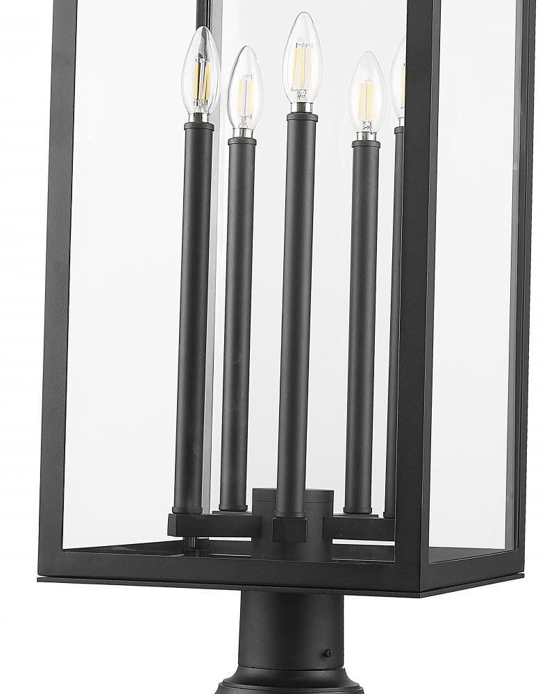 Put finishing touches on your patio or porch with this transitional five-light outdoor pier mount light. It boasts a tall, squared lantern silhouette complete with glass panels. A coastal black finish is strong and durable, perfect for all environments.