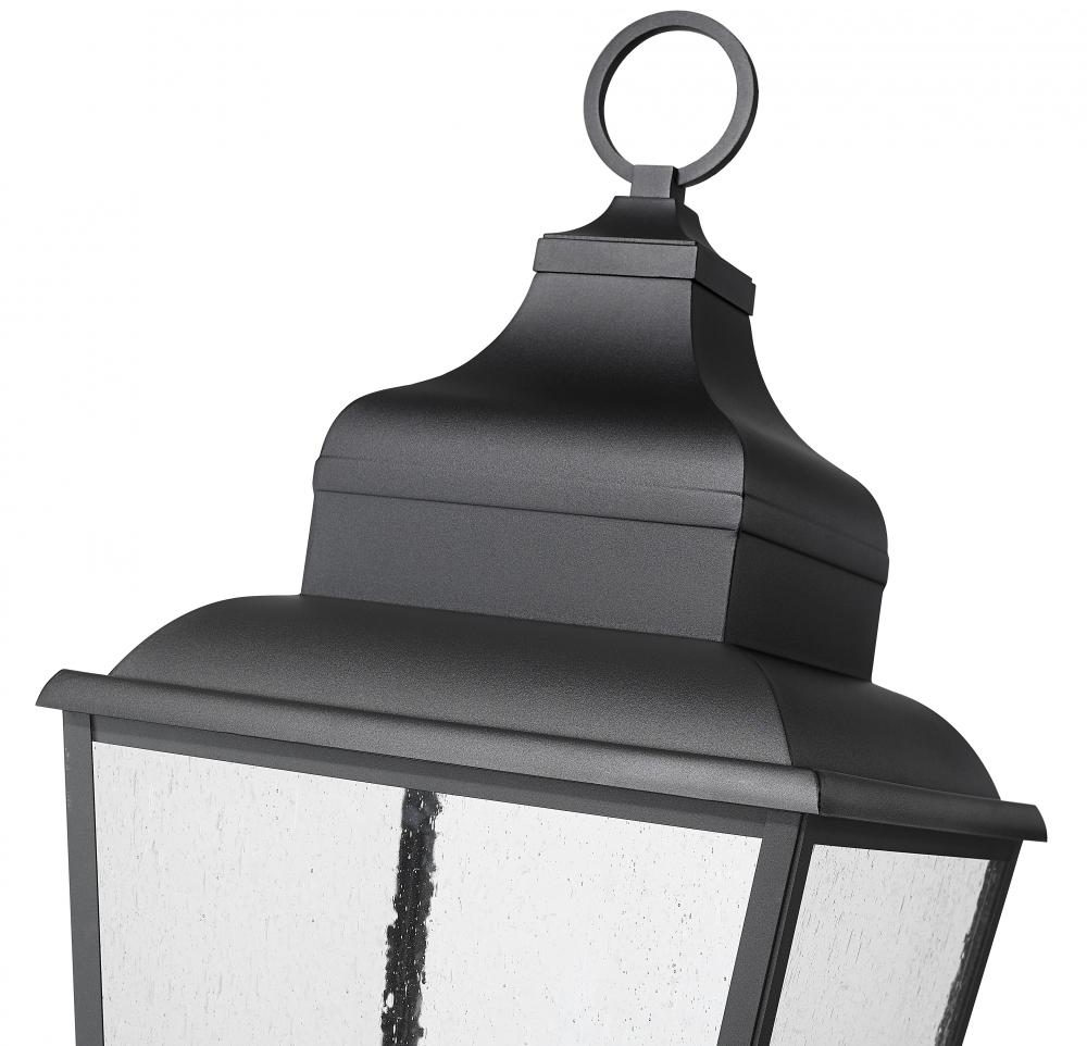 The Raphael collection, with its Black finish and clear seedy glass panels, is the perfect accompaniment to illuminate the exterior of traditional-style homes. Featuring rich details on the multi-tiered cap, scroll hook, and backplate, there is a variety o
