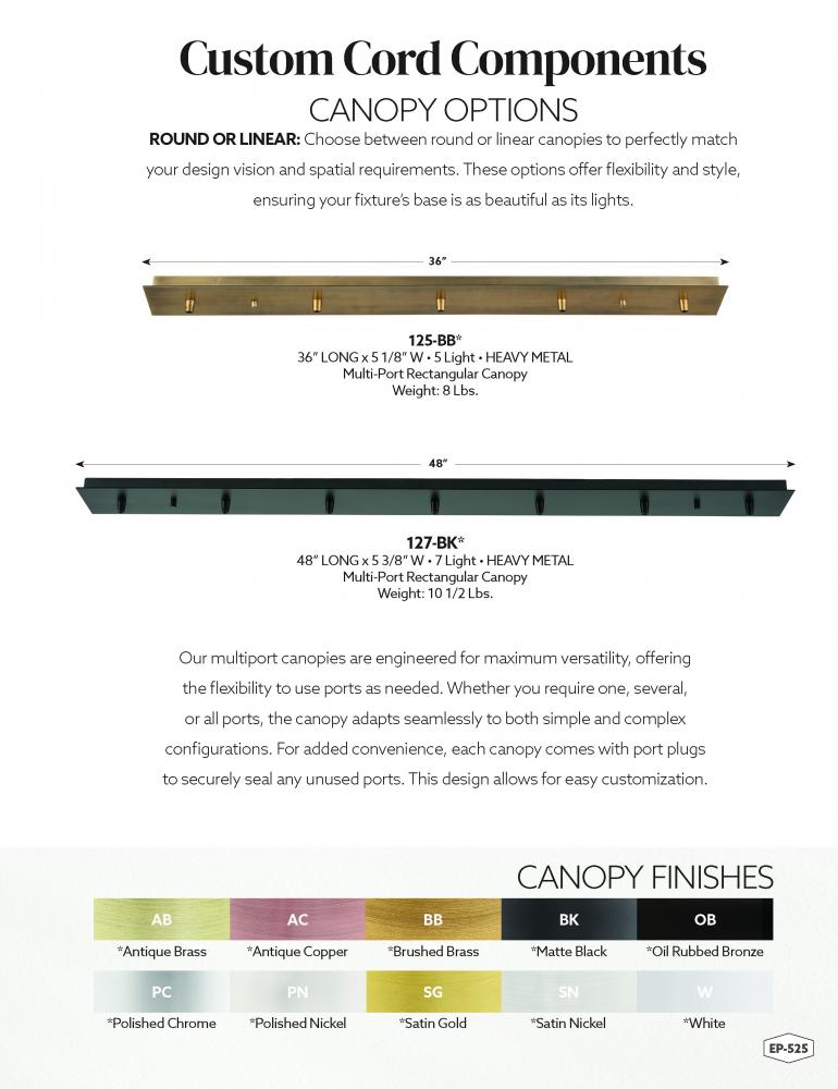 Custom Cord Collection - 5 Light 36" Multi Port Canopy - Matte Black Finish