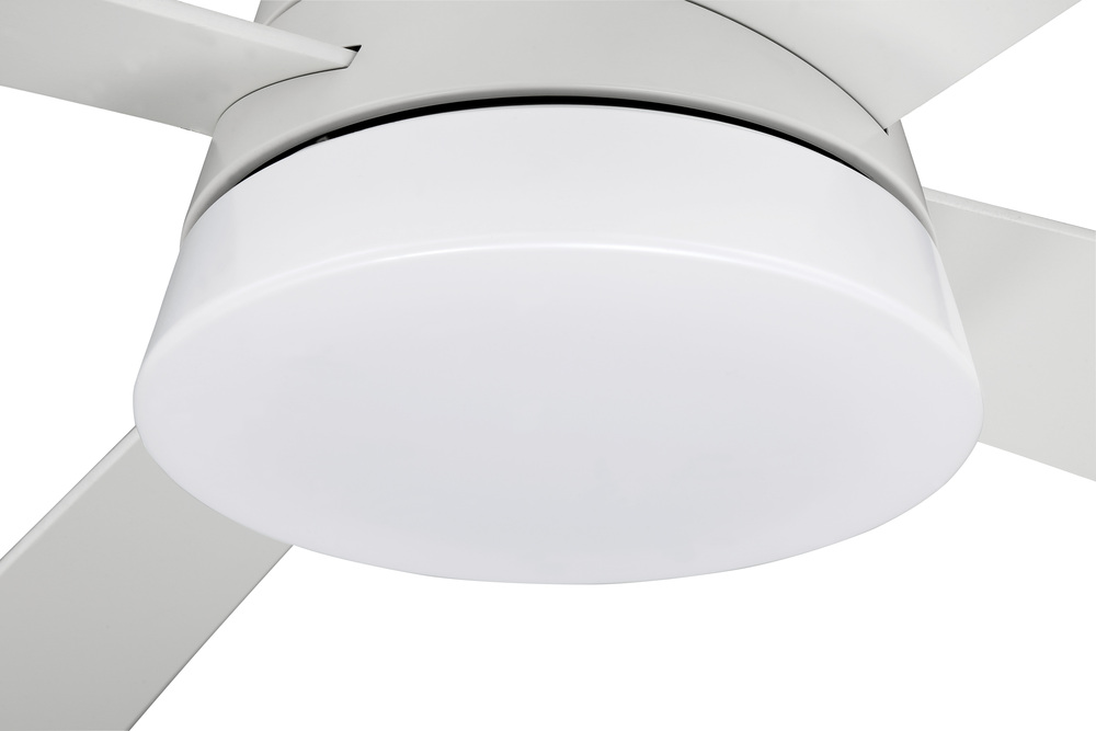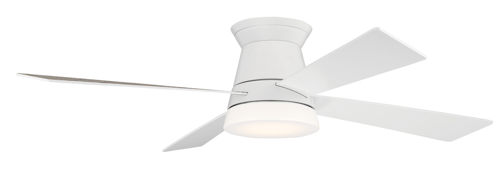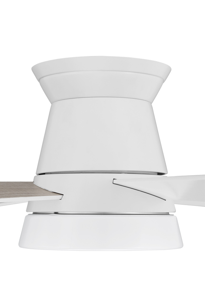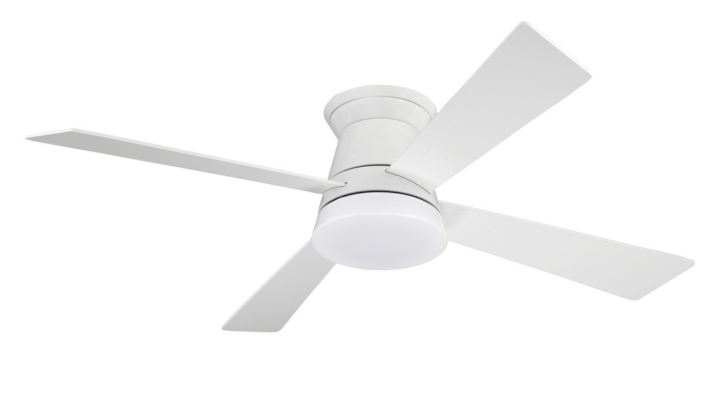 Part of our Low Ceiling Solutions Series, the Revello 52" indoor flushmount fan with four custom blades included is the ideal combination of contemporary design and advanced engineering for low ceiling spaces. The Revello features a heavy-duty, 3-speed, reversible motor, integrated dimmable LED light with new 95% transmittance lens for enhanced light output, included remote and wall controls.