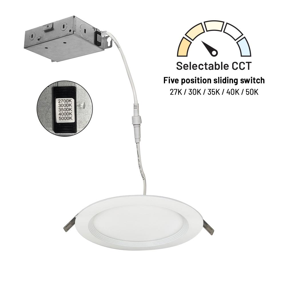 6" FLIN Round Wafer LED Downlight with Selectable CCT, Matte Powder White Finish, 120-277V