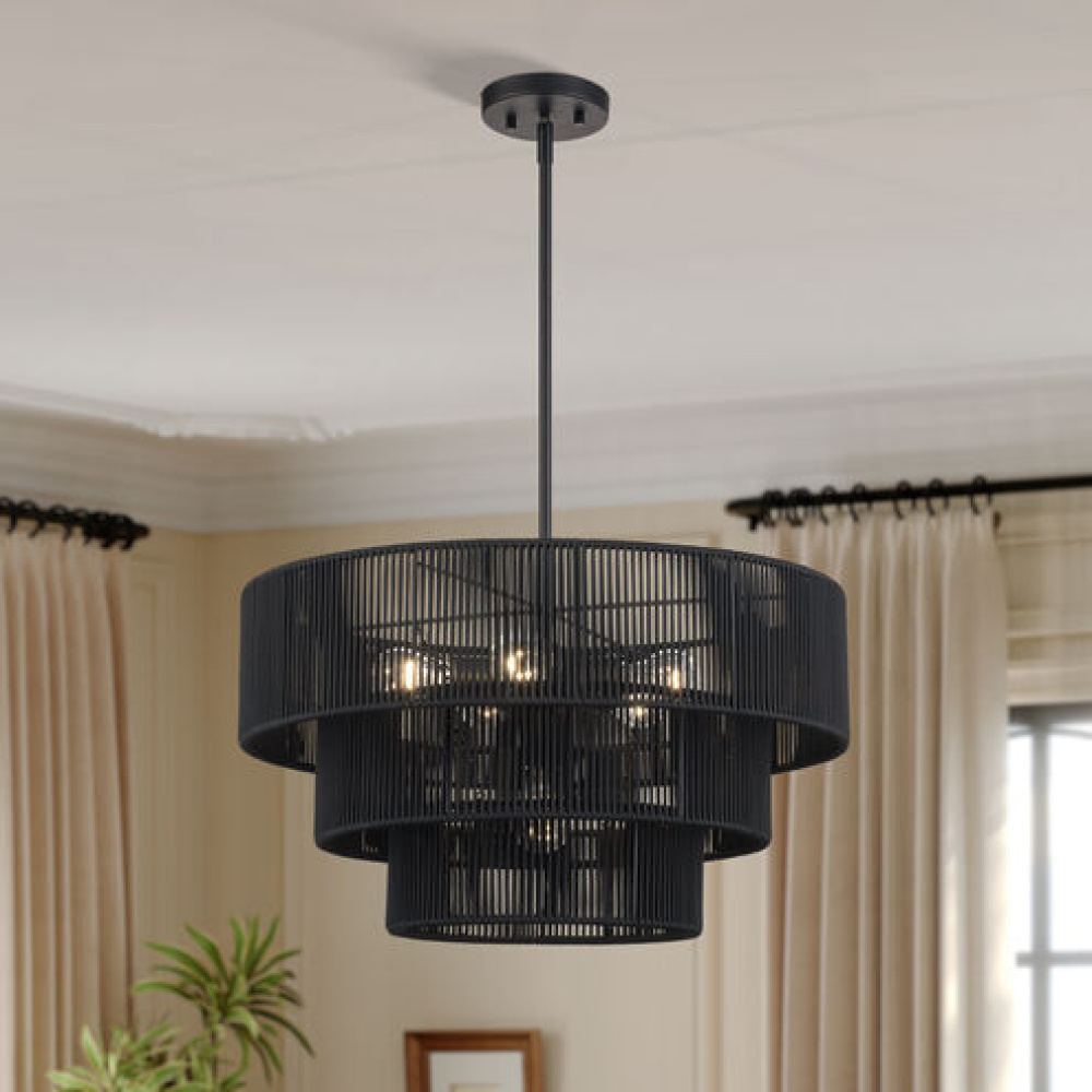 Livex Lighting 60247-04 - 6 Light Black Pendant Chandelier