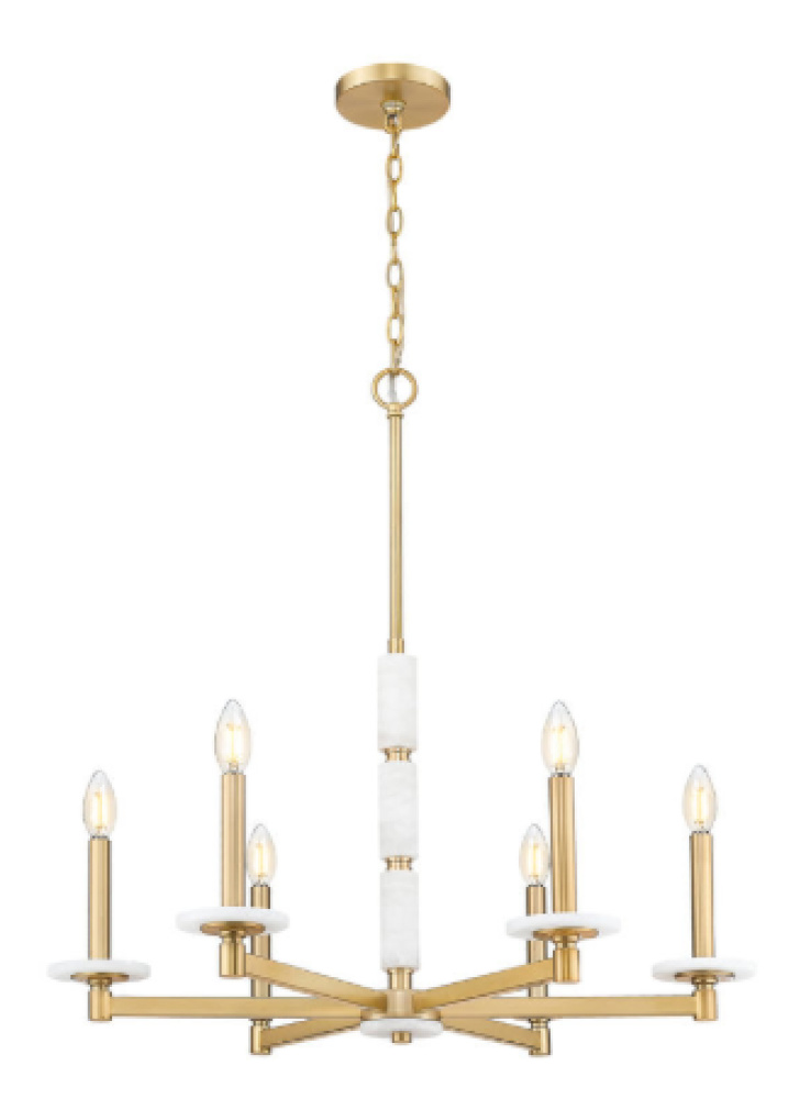 There?s a softness in this design that feels timeless yet fresh. The gentle gleam of modern gold finish supports six alabaster orbs, each glowing with natural brilliance. Perfect for gathering spaces, it creates a golden halo that turns light into atmosphere.