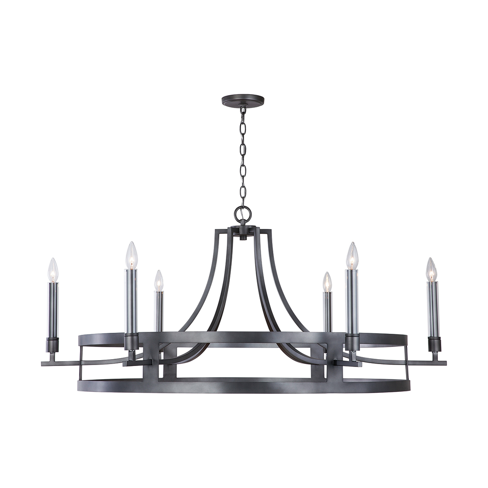 6 light chandelier with Midnight Grey finish and Clear glass. Glass Candle Sleeves.