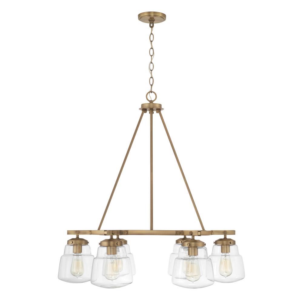 With a fresh spin on diner-inspired glass, the Dillon 6-Light Chandelier brings a refined retro vibe to any space. The Aged Brass finish accents the pronounced rivet details and sculptural silhouette.