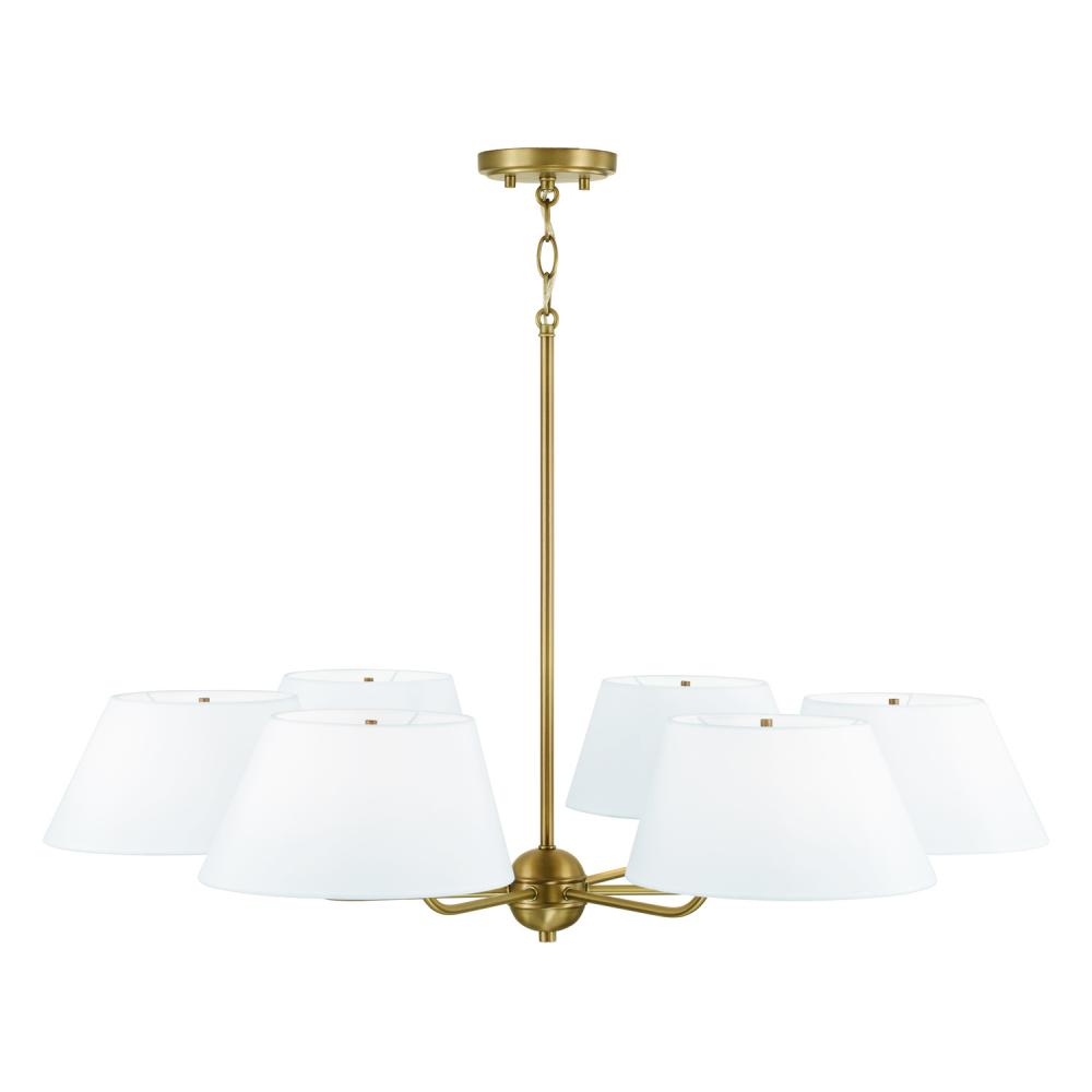 36"W x 21.25"H 6-Light Chandelier in Aged Brass with Offset White Fabric Shade