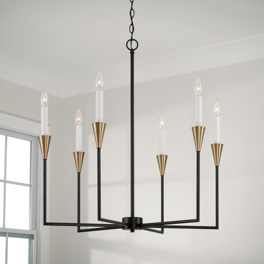 Capital 451991AB - 9-Light Chandelier in Black and Aged Brass with Interchangeable White or Aged Brass Candle Sleeves
