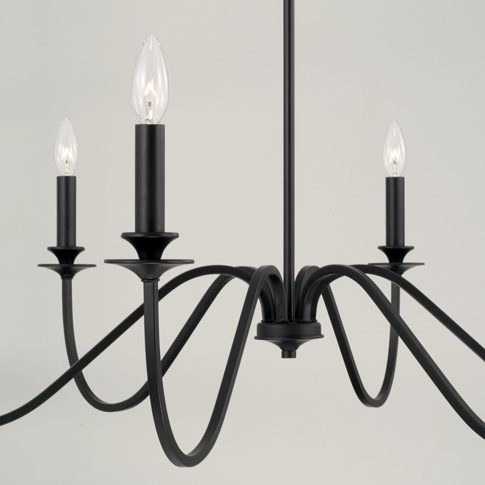 The iconic silhouette of the Weston Chandelier gets a modern update with the Matte Black finish. The curved arms create sculptural intrigue and draw the eye upward for a classic aesthetic.