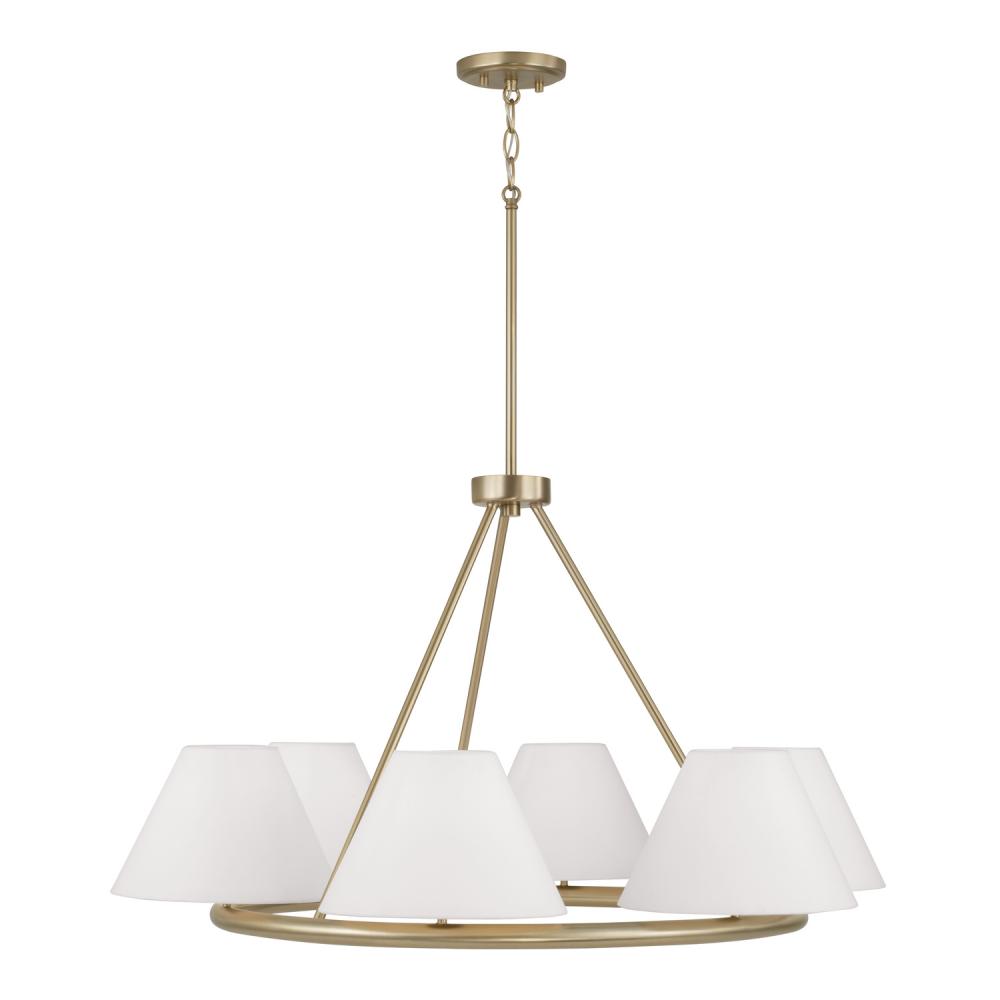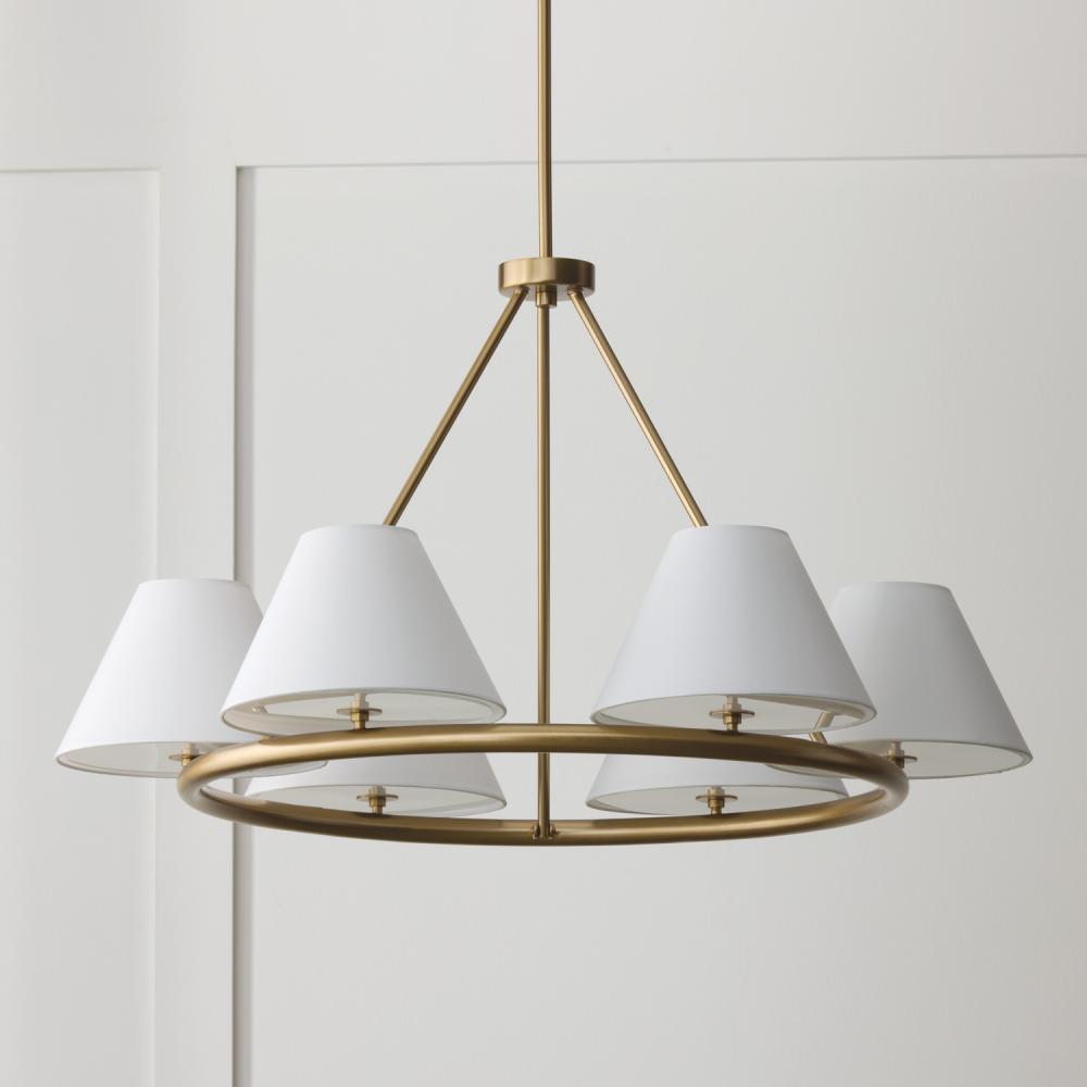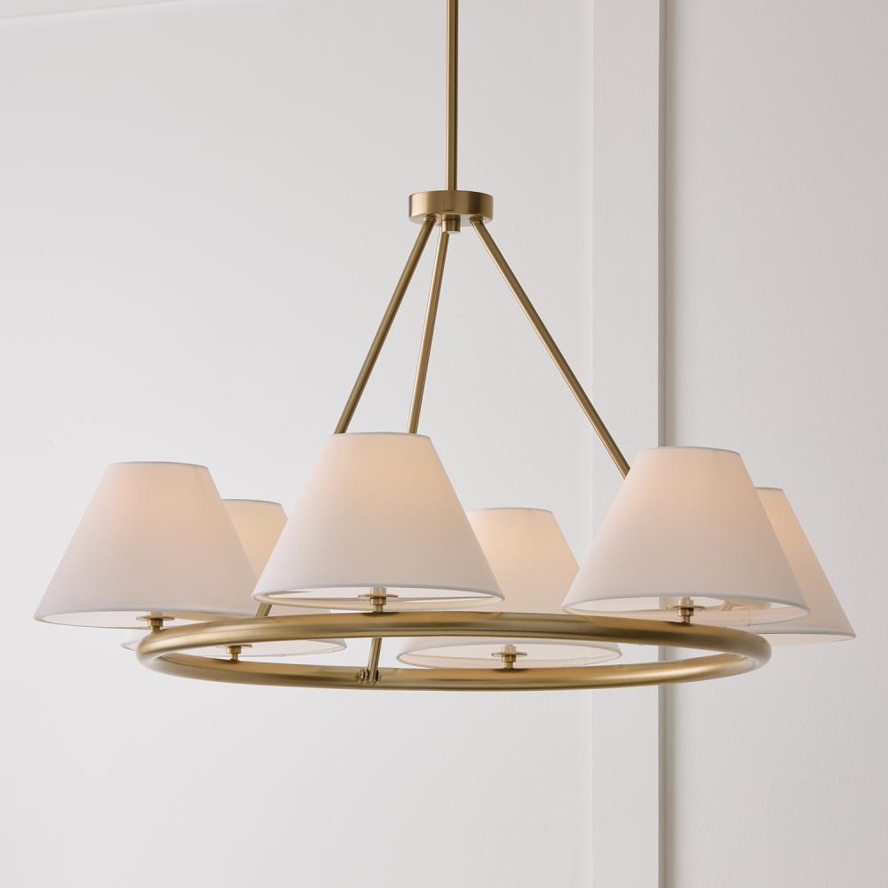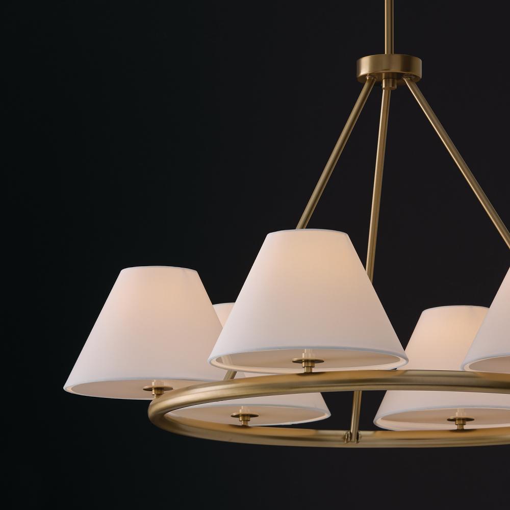 Transitional style meets modern details in the Parson 6-Light Ring Chandelier. The tailored fabric shades and glass diffusers evoke a sophisticated aesthetic, while the sleek ring base delivers a subtle shine in the Matte Brass finish.
