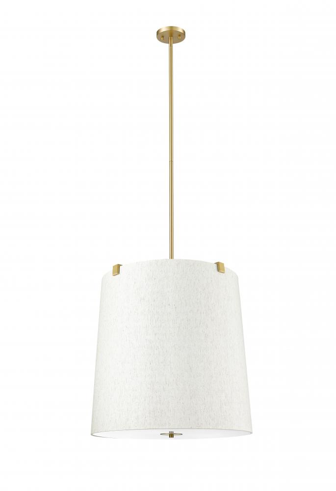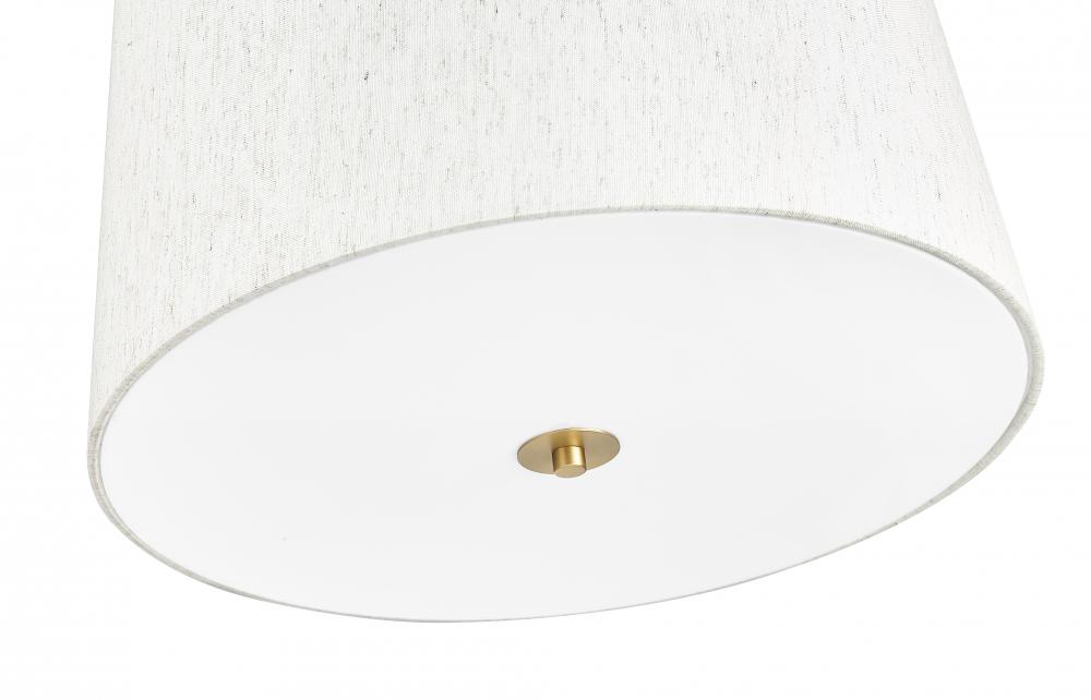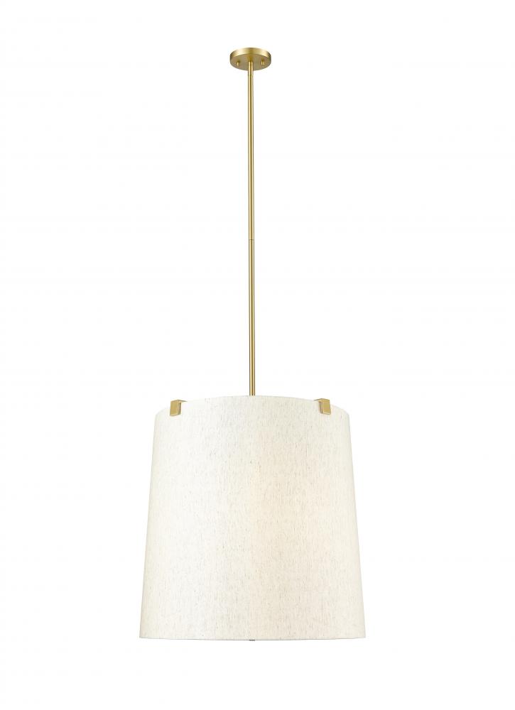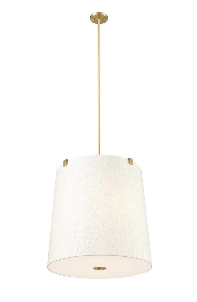 Retain the classic look of traditional lighting design with updated elements and a stylish flavor. This six-light pendant highlights islands or living spaces with a low-profile look, blending gorgeous modern gold finish steel framing and accent clips to a cream fabric shade, as candelabra lights filter through the diffused shade. This dimmable fixture offers variable lighting levels to suit different spaces.
