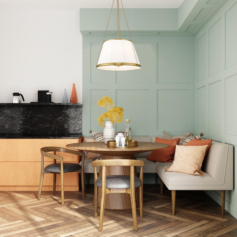 Classically simple, but with attention to detail, the Madeline pendants are offered in two sizes and can be height adjustable. Pleated linen shades and delicate chains make this collection a stand-out. Available in Matte Black, Brushed Nickel and Modern G