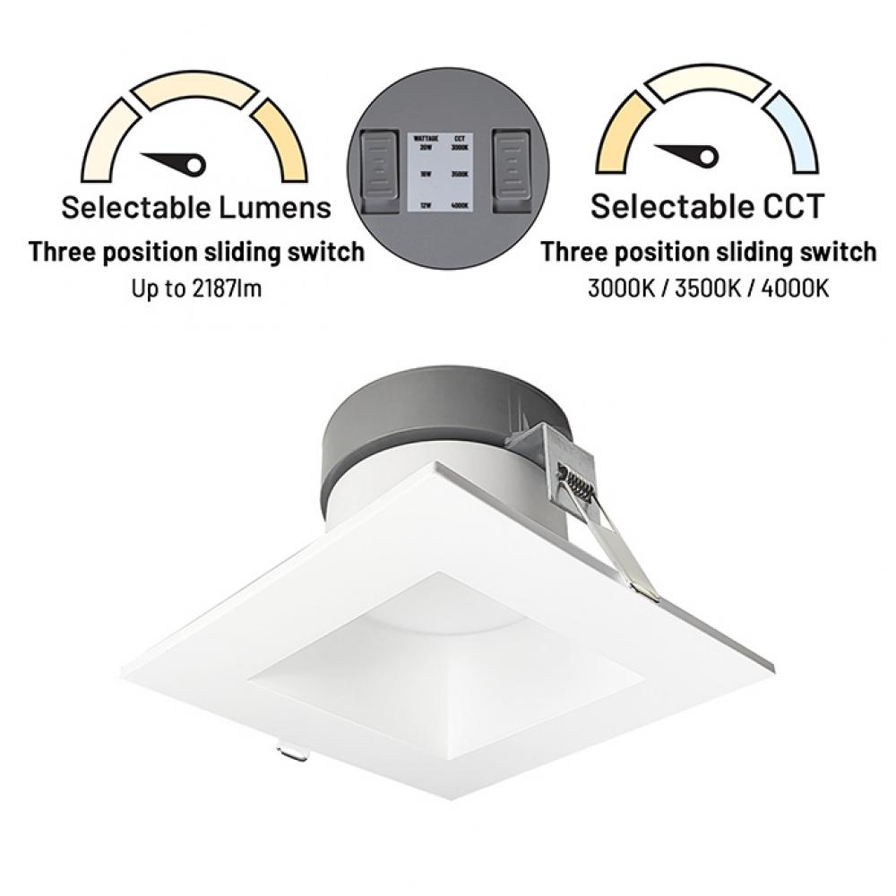 6" Quartz Square LED Can-less Downlight with Selectable Lumens & CCT, White Finish