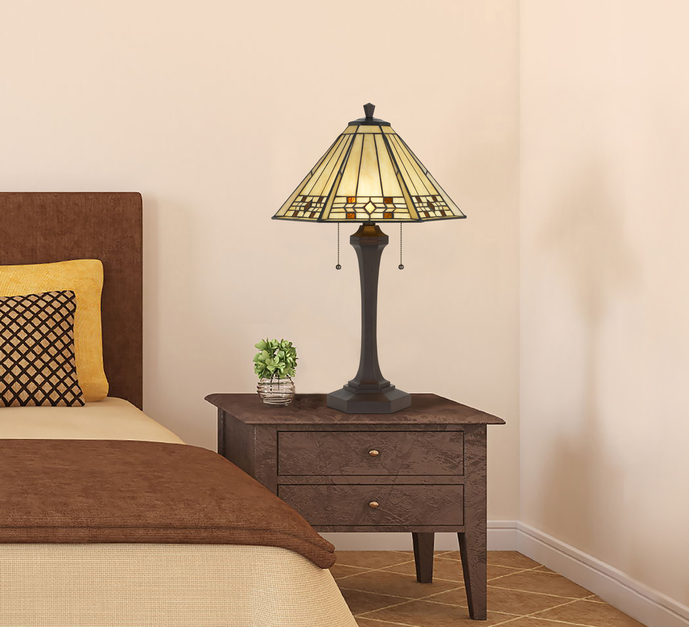 CAL Lighting BO-3010TB - 60W x 2 Tiffany table lamp with pull chain switch with resin lamp body