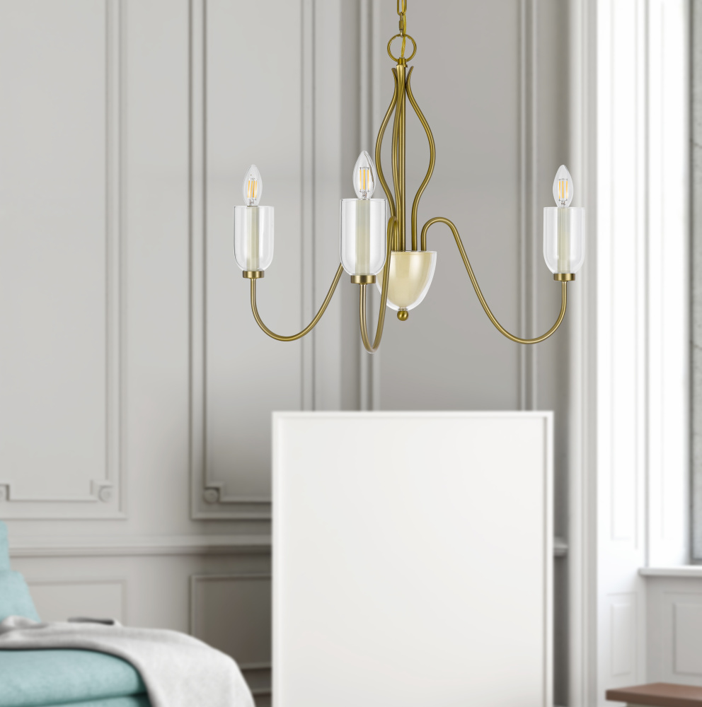 CAL Lighting FX-3818-3 - 60W x 3 Kalamaria metal chandelier with glass shade