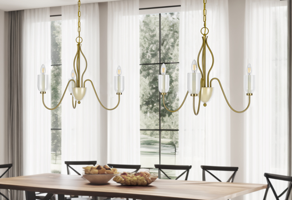 CAL Lighting FX-3818-5 - 60W x 5 Kalamaria metal chandelier with glass shade