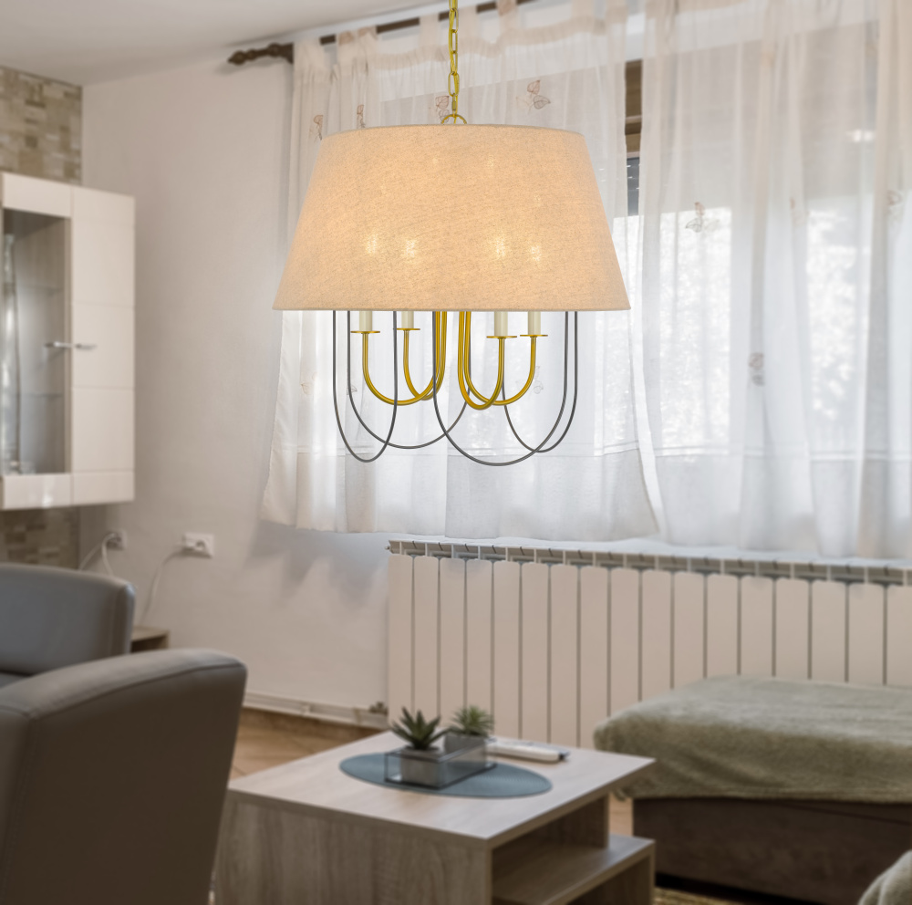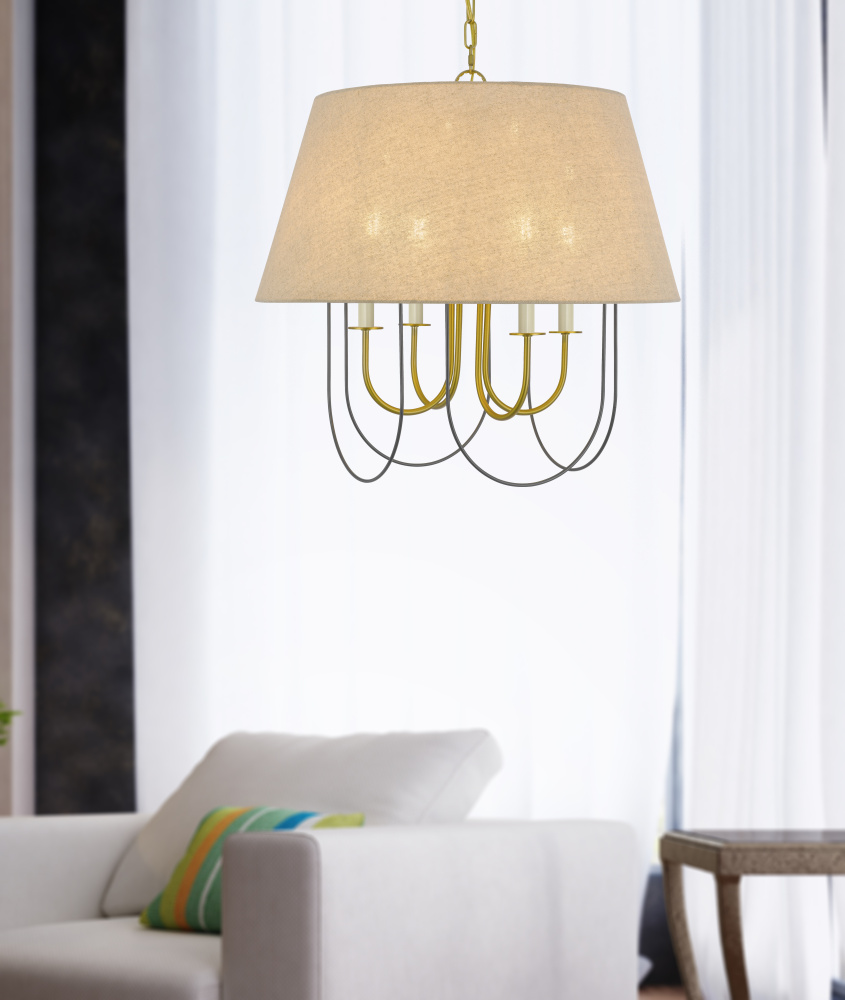 CAL Lighting FX-3817-4 - 60W x 4 Eupora metal chandelier with burlap shade