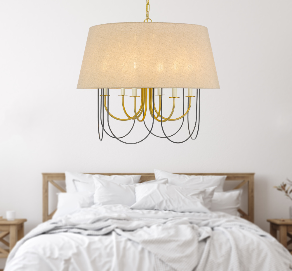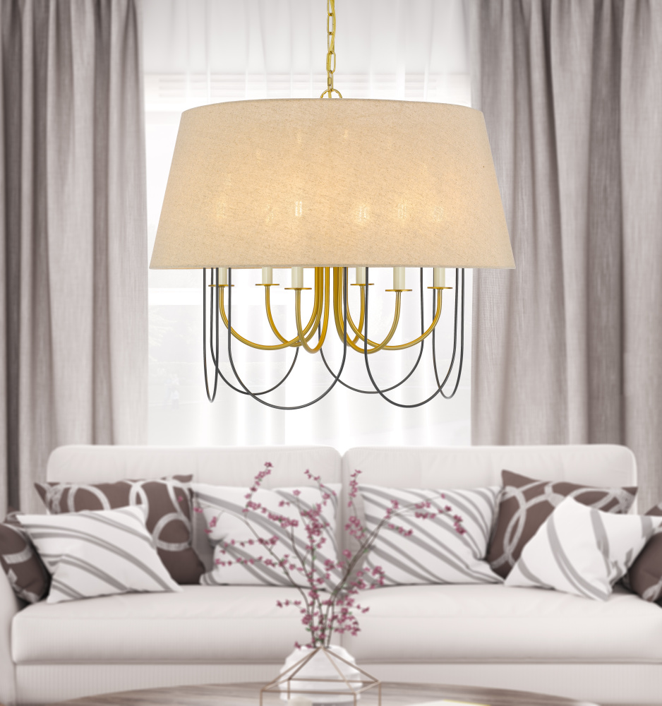 60W x 6 Eupora metal chandelier with burlap shade