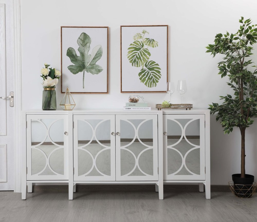 Elegant MF82001WH - 60 inch mirrored credenza in White